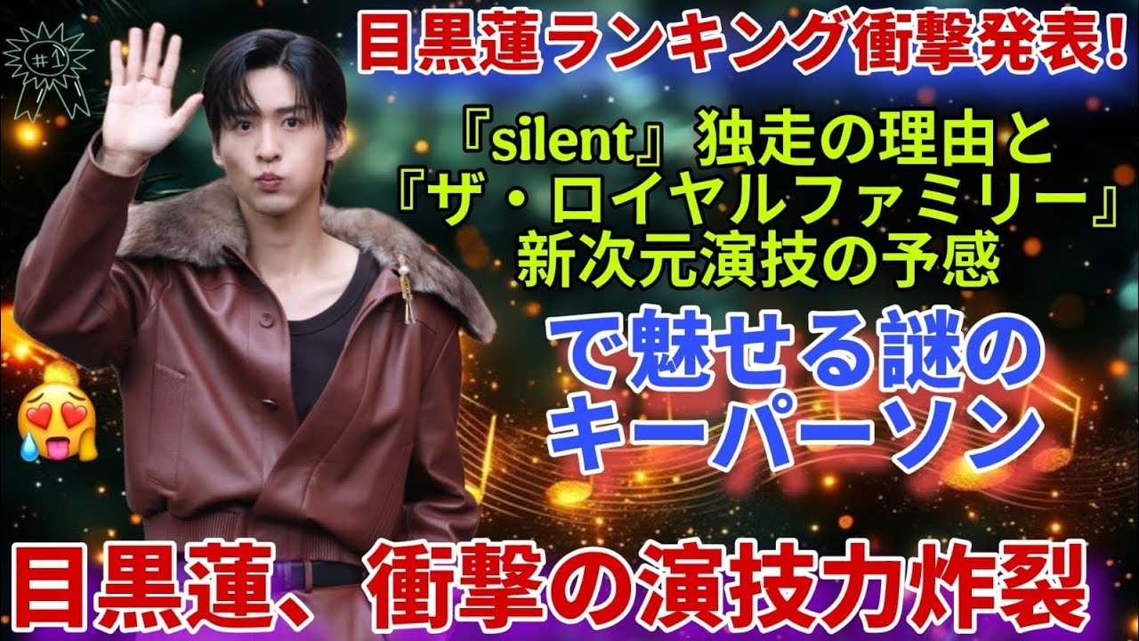 『silent』で見せた圧倒的演技力が1位独走する理由から、『ザ・ロイヤルファミリー』での謎のキーパーソン役による新次元の演技まで、彼の俳優としての魅力を余すところなく紹介します。ファン必見の衝撃シーンや演技の裏側にも迫る、目黒蓮ファン必見の完全ガイド!