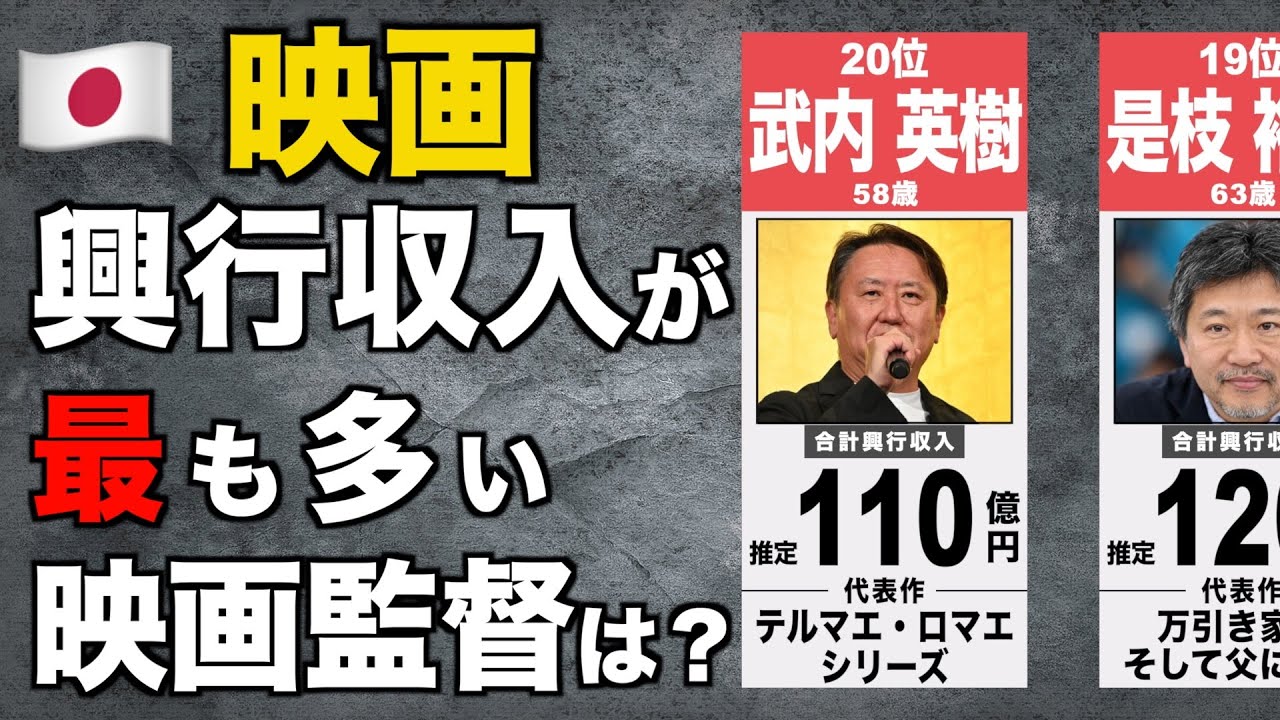 日本の映画監督 合計興行収入ランキング 【TOP20】