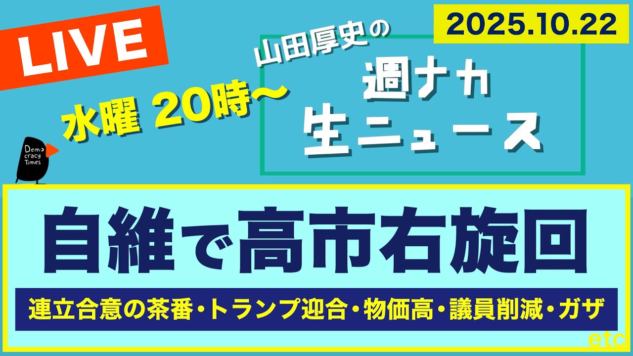 <自維で高市 右旋回> 連立合意の茶番/トランプ迎合/物価高/議員削減/がざ【山田厚史の週ナカ生ニュース】
