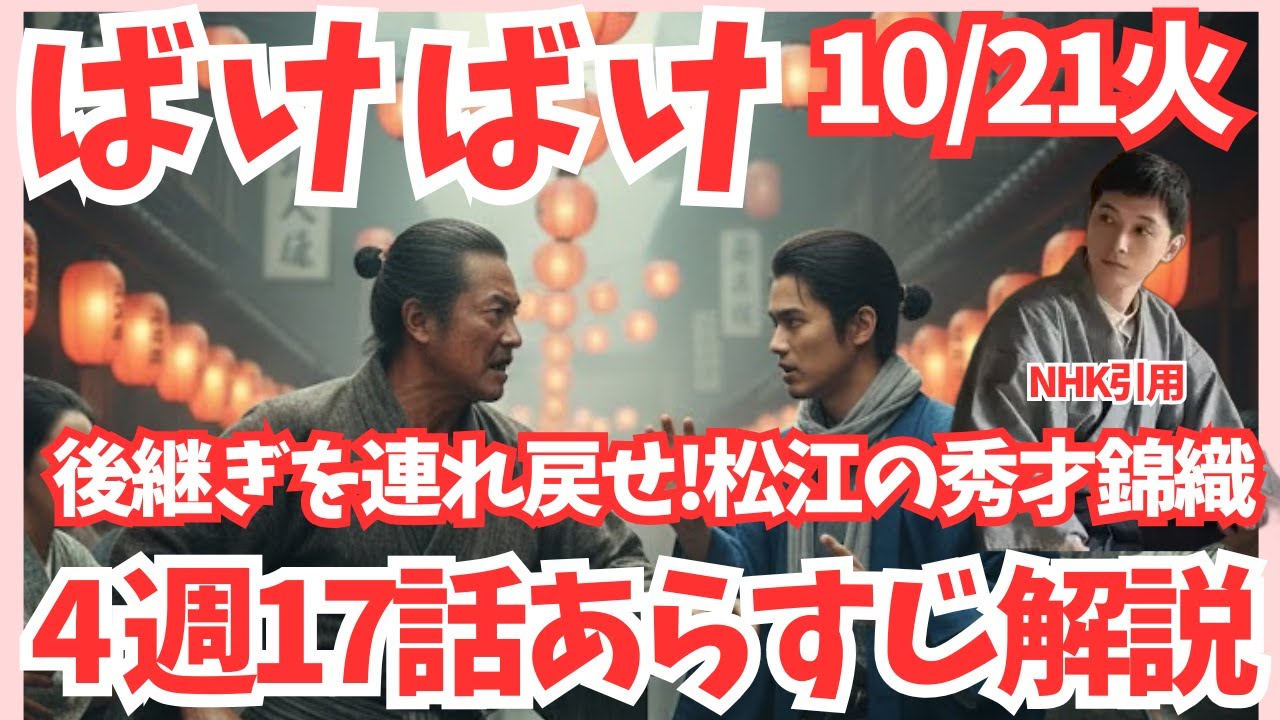 朝ドラバけバケ4週第17話のあすじ ネタバレ解説です。10月21日火曜日 放送予定第4週の17話は昨夜の銀次郎の 決断が時と松の家全体に大きな波紋を 広げるエピソードが描かれます。愛の頭皮 校と家族の絆が激しく工作し物語の舞台が 初めて松江から東京へ移るという非常に ドラマティックな会になりそうです。 起き手紙と託された指名夜が開けるか開け ないかの冷たい早朝時が目を覚ました枕本 には畳の上にそっと置かれた一通の白い 手紙があった。静かに開くとそこには 銀次郎の苦十の決意が綴られていた。彼の 不在を悟った時はその場に崩れ落ちる咲夜 や彼の頭に即頭できなかった自分の沈黙が 愛する夫を家から追い合ったのだと私の せいだという深い自績の念に狩られ涙が畳 に染み込んだ。それから数日後松の家の 重い沈黙を破ったのは下府長であるカエ門 だった。彼は松の家の誇りの象徴であった 鎧いや刀を五道具屋に売り払った金と 銀次郎の父親から聞き出した東京の住所を 時に手渡すそのまざしは厳しくも優しさに 満ちており松の家の後継を連れ戻して参れ と時に重大な使命を託した過法を手放して まで孫である銀次郎の生存を選んだカエ門 の愛情がその一言に凝縮されていた1週間 と2日の果てない度時はいを決し故郷祭を 後にする。撮影を出てから1週間と2日と いう気の遠くなるような旅地上気戦人力者 川船そして気戦を乗り継ぎ時はようやく 日本の首と東京にたどり着くその体は疲労 コ配しは泥にまみれ雑りはすり切れていた 時がたどり着いたのは東京寝ずにある古び 下宿小野屋の2階かれた声で銀次郎さん時 ですと部屋の前で何度も呼びかけると中 から出てきたのは見知らぬ男性で迷惑そう な顔でうるさいと一括し追い返そうとする 時は私は銀次郎の妻なんですと必死に 名乗るが男は銀次郎は人力者の婦だ今は どこにいるか知らんと冷たく言い放つ 男の視線は長い旅ですり切れ泥にまみれた 時のボロボロの雑りと傷だらけの足に 止まったその痛々しい姿に東京の冷たさの 中にも残る人が働き男はしぶしぶながらも 時を部屋の中に入れてくれた。座敷に腰を 下ろした時は張り詰めていた緊張が解け アンドの息を漏らす長び 疲れたなあと人心地つくといつしか深い 眠りについてしまった東京で出会う松江の 修裁たち時が目を覚ますと部屋には2人の 若者がいた彼らは低大生の根岸と若宮と 名乗る。そして先ほど時を部屋に入れた男 は松江出身の終西優一であった。彼らは皆 出身の学徒であり大前で倒れていた銀次郎 を保護し、共同生活を送っていることを時 に告げた。その頃遠く離れた松の家では カエ門 司助の3人が時が銀次郎を連れ戻せずその まま帰ってこないのではないかと深い不安 と心配に苛まれていた麻ドラ解説員が語る 化け第17話の真層。第17話は銀次郎の 個人の愛という問題定期に対し時が松の家 の使命を背負って旅立つというヒロインの 成長物語において最も重要な旅立ちの回 です。1カエ門の鎧いと刀が示す愛。この 回で最も心を打つのはカエ門の行動です。 彼が過法である鎧いと刀を売り払ったと いう事実は単なる金銭上達以上の意味を 持ちます。鎧いと松の家の武士としての 誇りと価格の象徴売却関門が銀次郎の命と 時の行動を支える家族の生存を古く臭い プライドよりも優先した旧世代の大いなる 自己犠牲です。後継を連れ戻して参れと いう言葉には彼が銀次郎の愛と時の力を 認め松の家を託したという信頼が込められ ています。時はこの過法売却の重みを 背負いただの妻としてではなく松の家の 希望を運ぶ死者として東京へ向かうことに なります。に東京という名の試練の門、1 週間と2日という具体的な旅の日数の描写 は当時の末裔と東京の距離を際立たせ、時 がどれほど困難な道乗りを乗り越えてきた かを視聴者に訴えかけます。東京での 冷たい対応、特にの男性西氷に追い返され そうになる場面は故郷末裔の温かさとは 異なる東京の無関心と厳しさを象徴してい ます。しかしその冷たさの中で時の ボロボロの雑りと傷だらけの足を見たにし 氷が同場して部屋に入れるという描写は 朝ドラが大切にする人がいかなる時代の壁 も超えていくというメッセージを伝えてい ます。時の旅の過酷さが帰って東京の青年 の心を動かしたのです。さん松江の宗裁 たちが銀次郎を救う下宿にいた低大のネ岸 若宮そして西が松江出身であり倒れていた 銀次郎を保護していたという事実は非常に 重要です。これは銀次郎が松の家という 古いしがらみを捨てた後、東京という 新しい部隊で同じ故郷を持つ新しい仲間と 出会い、受け入れられたことを意にします 。次治郎は投避したのではなく、新しい 社会への足がかりを得ていたのです。この 松江出身の若者たちの共同隊は時にとって の東京での最初の支援者となり物語は一気 に銀次郎の捜作から新しい文化と若者の 交流へと展開していく大きなターニング ポイントとなりました。