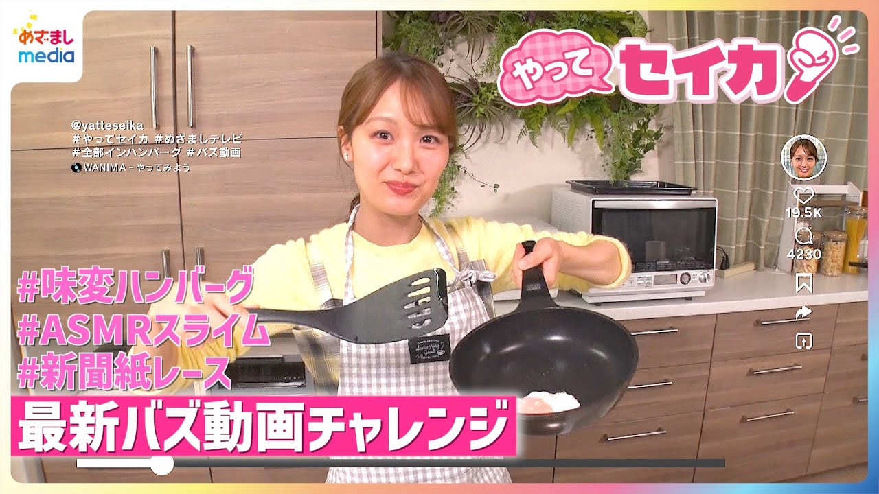 井上清華キャスターが最新バズ動画に挑戦!簡単マンドゥクッション・IKEAバスケットアレンジ・「めっちゃ楽しい」新聞紙レース・“疲れ解消”ASMRスライム・“斬新”味変ハンバーグ【やってセイカ!】