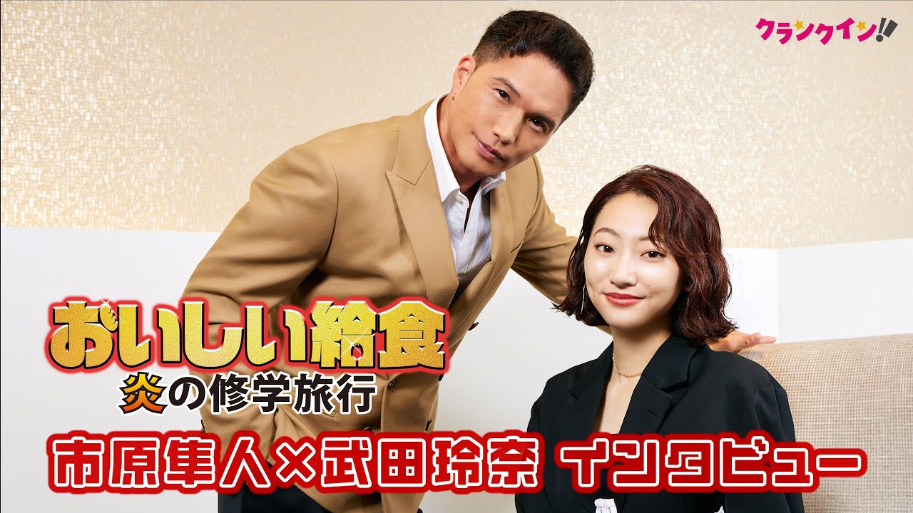 もう“知る人ぞ知る”とは言わせない! 2019年にスタートした学園食育ドラマ『おいしい給食』は、その面白さが拡散され、いまやTVシリーズ3シーズン、劇場版4本を数える人気コンテンツへと成長。最新作『おいしい給食 炎の修学旅行』では、市原隼人演じる給食を愛する教師・甘利田幸男とライバル生徒の熱い給食バトルが、ついに教室を飛び出し、修学旅行の地で繰り広げられる。そしてファン待望のカムバックとなったのが、武田玲奈演じる御園ひとみ先生。「season1」以来の再会を果たした2人は、何を思うのか――。注目の“急接近シーン”の裏側から、「おいしい給食」への変わらぬ愛情、そして今の想いまでたっぷり語ってもらった。