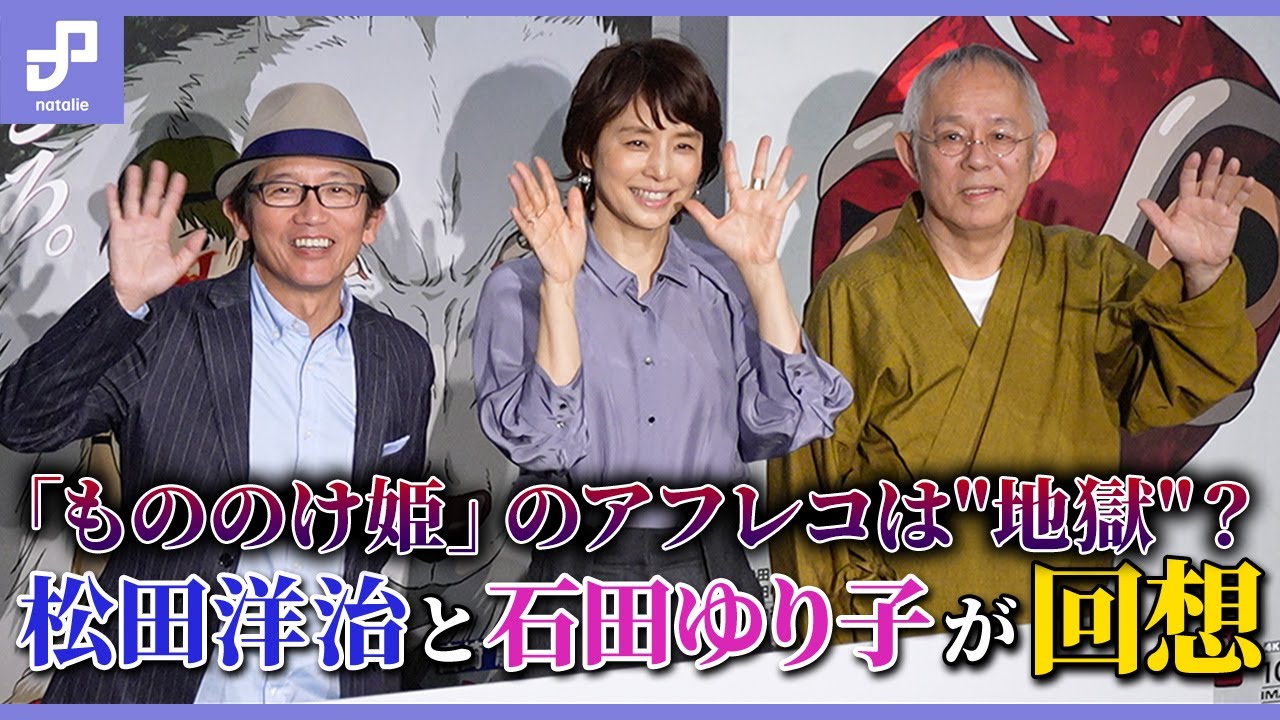 スタジオジブリ作品「もののけ姫」4Kデジタルリマスター版のプレミア試写会舞台挨拶が10月20日に東京・TOHOシネマズ 新宿で行われ、キャストの松田洋治と石田ゆり子、プロデューサーの鈴木敏夫が登壇。宮﨑駿とのアフレコを回想した。