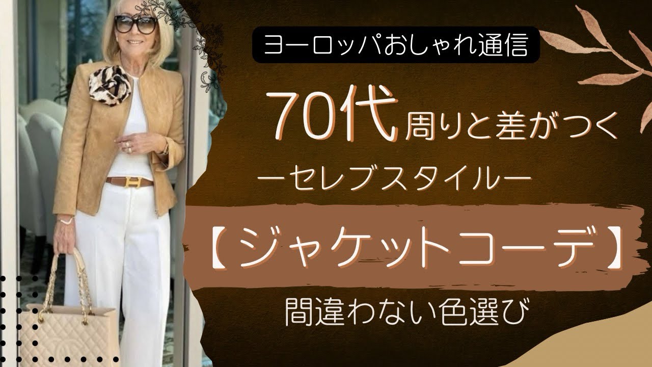 [音楽] スタイリストのリカです。今回のテーマは ですね、ジャケットです。ラケットってね 、割とあの、ま、特に秋になってくると ですね、黒、そしてグレー、大体キャメル とかね、ブラウンといった感じになるん ですけどもね。そういったオイルも とっても素敵なんですけども、そういった 色はちょっと引内に何着るかとか、そして そのね、ジャケット自体のシルエットが どんな形かってのがすっごく大切なんです よね。なぜならばね、そういったちょっと オ色、コンサバお色イロっていうのはね、 不景見えといったね、怖いワードになるん ですよね。ですのでね、ちょっとね、 ジャケット切るんでしたらね、ちょっと 華やかにそして若かわ々かしく見えた方が やっぱりよろしいですよね。ですので、 そういった色合わせ、そしてね、 ジャケットといえばね、そのスラックスと かね、パンツとか開くんでしょって感じで はなくって、デニムを履いたりね、 ちょっとエレガントなワンピースの中に来 たりね、いろんな感じで着こなすことが できて、そしてですね、キリッと感をね、 しっかり感、クラッシー、ひがるといった 感じのね、表現ができるアイテムでもあり ます。ですのでね、特に今回はちょっと色 にこだわってね、お話ししたいなと思って いまして、ちょうどリクエストの方でね、 なんかジャケットのお色、黒以外に素敵な お色ありますかっていう風にコメント いただいたんですよ。なので、お色といっ たところでね、テーマで割とそこを中心に お話ししたいと思います。こんなお色をね 、切るとこんなイメージになりますよとか 、こんなお色はこんな色と合わせるのが いいですよとか、その中でね、パット色を 見てね、あ、この色ビビッときたなとかね 、ちょっと、あ、この色そんなイメージが あるんだ。じゃあちょっと試してみたい なって感じに参考にしていただければと 思います。では、70代のかっこいい ジャケットスタイル、可愛いジャケット スタイルをスナップ解説の方で解説して まいります。ではまずこちらからです。 [音楽] まずシルエットなんですけども、70代に 1番おすすめのシルエットはロング ジャケットです。取り入れやすいといった ね、アイテムでもありますので、プラス ボディフォローといったところも叶います 。黒上下にはうるお色といったところでね 、ちょっとお話をさせていただきたいん ですけど、まずはですね、この黒上下って いうのはね、あの真ん中で気汗見えといっ たところが見えるんですよね。この黒はね 、他の動画でも話してるんですけども、外 にね、ジャケットとかそういう感じで入れ てしまうとキブ取りといったところが 見えるんですけど、この上下を真ん中に 持ってくるとね、気やせ見えといった ところが見えますので、取り入れやすい コーだと思いますので、ではその上に何色 といったところでお話を進めていきます。 左からオレンジはですね、若かわかしさと 元気に見えるといったお色なんですね。ご 自身のエネルギー補給といった部分でも 後押ししてくれます。そしてね、この グレーなんですけど、少しね、ブルー がかってるんですけど、この色はね、品が あってクラシーといった感じで落ち着きと いったところが見えるエレガントのオル です。ですがね、ちょっと地味になりがち ですので、こういったね、金ボタンって いうものをね、お勧めします。そしてね、 このピンクオレンジなんですけどね、大人 可愛さを少しプラスピッとした感じでね、 持っていってくれますので、とってもこの ピンクの良さとオレンジの良さといった ところがね、相まって本当にね、大人の 可愛いといった感じを演出できます。 そしてですね、このスモーキーピンクなん ですけども、こちらはね、品があって ピンクの中でもね、割とね、トイレやすい といったお色になります。そしてですね、 このピンクと黒っていうのはね、もう最高 の組み合わせなんですよね。そしてこの ピンクはね、アンチエイジングに聞きます といったところでね、この動画でもお話し してるんですけども、そういったところで 本当にね、お顔周り、お顔に反射するとこ に持ってきてもらうとアンチエ人が叶う色 です。それと黒を合わせることでね、可愛 さとアンチエイジングとそしてね、気汗 効果といったところね、真ん中に持って くるといった感じですので、とってもこの ね、ピンクと黒といったのが最高の配色 です。そしてブルーですよね。このブルー なんですけども、今年秋冬にトレンドと いったね、お色になってるお色なんですよ 。ただね、こちらも薄いになりますと、 ちょっとぶやけ感といったものが出ますの で、こちらもね、金ボタンといったものと かちょっとね、あの、解色のあるボタン なんかを選ぶといいかなと思います。 そして緑なんですけどね、こちらね、私の 動画ではね、もう若見えでしょうってね、 感じでね、知ってら