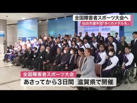 10月25日から滋賀県で開かれる全国障害者スポーツ大会に向けて、仙台市の選手団が結団式を行いました。