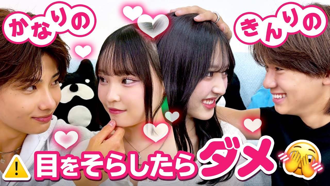 [音楽] 目をそらしたらダめ。はよしクイズです。終わった。 [拍手] せーの 識。 こんにちは。かなです。ゴです。 せーのダブルリンです。 イエー。 すごい。 初めまして。初 めまして。 初めまして。なんだね。年あると思った。初 めまして。初めまして。 ええ、今回の企画は目を育らしたらダめはよしクイズです。 おお。 今回はカップル対抗ではよしクイズに挑戦してみたいと思います。 問題の内容はついついてしまうようなカップルにまつわるのろ気問題となっています。 へえ。 まずは押しが1 番早かった人に回答権が与えられ回答することができます。 [音楽] うん。 回答する時は恋人の目を見ながら回答しなければならず うん。 目をそらさずに回答できたカップルが 1ポイント獲得です。 なるほどね。 答えが合っていても目をそらしてしまったら不正解になります。合計ポイントが高かったカップルが勝利となり 負けたカップルにはとある罰ゲームをやっていただきます。一 発1発ゲとか言っての笑えるけど頑張る。 正直勝てるけどな。 じゃあそれでは最初の問題はこちら。 [音楽] え、でない。リノの外見で一番好きなのは、えっと、綺麗な花です。 ありがとう。 [音楽] よっしゃ。 長い。 長い。 長いよ。ありがとう。い よ。 次の問題はこちら。 [音楽] うわ。 あ、 優しいところです。 [音楽] うん。 うん。余裕だね。 余裕余裕。笑っちゃだめだったらダメだったかもしれない。あ、 [音楽] 簡単なんじゃない?これ。 さすにね。 え、それな? 簡単。簡単。簡単かもしれ。 たしちゃう。これもう次の問題はこちら。 [音楽] あ、もうちょ読み切ってない。 今日も可愛いね。て言われたら嬉しいです。 [音楽] と言います。 はい。言って。 今日も可愛いね。 可いい。 はい。 おお。 長いな。 長いな。お、 次の問題はこちら。 [音楽] もうちょっとちょ。いや、これ結構かけだよ。 行動はとかだったらど し言葉とかある。 えっと、う、 そらした。そらした。今、え、そらした? 上向いた。 あ、そういうこと。 ああ、そ、そういうことか。 あ、そういうこと。 問題何だっけ?ちょっと待って。ちょ、待って。もう、もうちょい聞いて。もうちょ。 [音楽] はい。 今考えてる。 晴らす時に見上げる上目使いです。 うん。 うん。 してるっけ? うん。 ありがとう。 おお。 そういうことね。 リバし問題めっちゃ苦手やねん。これどうしよう。 もうじゃ終わったやん。 やばいやばいやばい。 それでは次の問題はこちら。押せんかった。 [音楽] えっと、好きだよって言われた時です。 おわ。 ああ、 強いんちゃう。 ああ、ちょっとリ強いぞ。 待って。やばくね? 1 票しか取れてなくね? 次の問題はこちら。 [音楽] ちょ、待って。これは 押しちゃったよ。 嘘を作らないでね。 それは何? なんか手つ時になんかこうやって こうやって触ってきて 握る時 やってるかな? うん。 この前してた。 ああ。 いや、いいんかい? え、むずい。 やばい、やばい、やばい、やばい。 早くね、今からこれ全部取んや。 うん、いける、いける、いけるよ。 キゴ恥ずかしがってんちゃう? あ、そんなことないし。 次の問題はこちら。 [音楽] あ、ちょ、やばい、やばい。なんか 1回金君1回1回 押せんかった。 制服ディズニー 行きたい。なんて言ってんな。 え、 あれ? が違ったんちゃん。 [音楽] あ、そういうことか。 [音楽] 制服ディズニー行きたいです。 おお。 行こっか。 うん。 [音楽] もっとく行きたいです。 行こっか。 う、 ね。 ありがとう。 それでは次の問題はこちら。 [音楽] お早いですね。 えっと、 うん。 あの、アピールタイムの時の鼻くじで うん。うん。 リのんちゃんがいいって思いました。 はい。 付き合ってください。よろしくお願いします。 お願いします。 お願いします。 お願いします。 すごい逆転来ちゃうかもね、これ。 それでは次の問題はこちら。負ける。 [音楽] うわ、スカ。 くそ。 リノン。今日も可愛いね。 ありがとう。いい。 [音楽] 長い。 やばい。意地悪。 [音楽] よ。よっ しゃあ。 次の問題はこちら。 [音楽] うわ、ナイス。ナイス。 流れ的にそうやったやん。もう行けたやん。絶対押せたやん。絶対分かっただ。 悔しい。 いつも優しくしてくれてありがとう。かっこいいね。今日も [音楽] さらせ。マジさらせ。こっち見て。無理やろ。 お願い。お願い。マジこっち見て。お願い。 無理。 お願い。こっち見たらなんか 絶対無理。ちょ、右が騒しくなってる。だんだん か。 はい。か、た、こっちも見て。 かナト。こっちも見て。ちょ、 かナんで ちょ長い。 なんで目してくんないの? ちょっと今リノ見てる。 いや、じゃ俺も見てよ。 俺のこと好きや。 俺のことに、 俺のこと 見てよ。俺のことも。 ああ、耐えました。 なんか そう。え、ちょっと待って。これはなんか普通に見ちゃいそうになっちゃう。こっち 最後3点にしてくれたら ちょ、じゃ、可愛くお願いしてほしいな。 確かに 仕方ないなあ。 大好きな