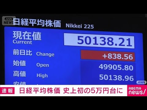 週明けの東京株式市場で、日経平均株価が史上初めて5万円を上回りました。