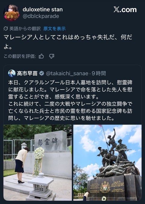 【大炎上】高市、マレーシアの日本兵墓地に参拝→マレーシア大炎上「人殺し侵略者の墓地に参拝、許せない」