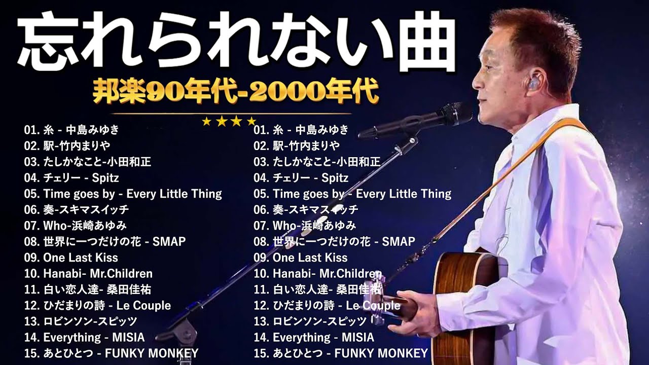 【広告なし】1990〜2000年代を代表する邦楽ヒット曲🎧💥40代から50代が聴きたい懐メロ30選 🎶💟 松任谷由実, 小田和正, Smap, Back Number