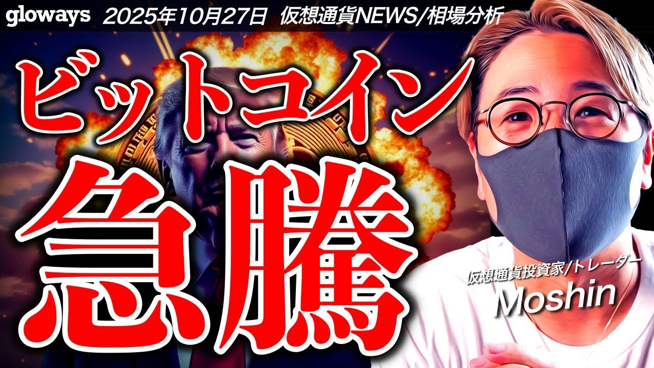 はい、どうも皆さんこんばんは。もしです 。今日の仮想通貨市場ですが、ビット コインは現在11万5410ドル 。え、昨日京都大きく上昇してきました。 このきっかけは一体何だったのか。そして 今後もしかしたら大きく状況が変わって くるかもしれません。今後の注目ポイント や中期同行、そしてアルトコインはどう なってるのかこの辺りまで今日も皆さんと 一緒に楽しく見ていきたいと思います。 僕がトレードでメインで使っているのは バンテージトレーディング。今新規登録 1万5000円。そして初回入金120% ボーナスのキャンペーンをやっています。 で、こういったボーナスと聞くとどうせ スプレッドが広いんでしょうという風に 思うと思うんですが、こちらの表の通り 海外の主要取引上ブローカーよりも圧倒的 にスプレッドが小さい。これがバンテージ トレーディングの強みです。特に最近強い ゴールドやビットコイン、そしてドル円 なんかはスプレッド最小の環境でトレード することができると。まずは概要欄から こういったボーナスを是非ゲットして トレードにもチャレンジしてみて いただければと思います。はい、今日の 画像通貨資料ですが、ビットコインが 1765万ということで3.5%の上昇。 Eさに関しては64万6000円7.6% 上昇。え、今日はイーサリアムの上昇が 目立ちました。え、その他アルトコイン見 てもソラナは5%、水も5%、5%を 超える上昇をしている通貨が参るんですよ ね。アルトコインも例外なく上がってき てるんですが、今後の見通しどういう風に なっていくのか、え、長金同行をしっかり 分析していきたいと思います。その前に 株式市場の投稿も見ておきましょう。はい 。今日上がったのは仮想通貨市場だけでは なくて株式市場も同様です。特に日経平均 なんですが現在2.3%上昇していまして 5万円台に突入しました。非常に大きな 節目を迎えているということで株式市場も 例外なく恩恵を受けているという状況と なっています。この強い動きに関しては 先週の金曜日から始まりました。先週の 金曜日アメリカの株式市場は主要産指数の 上昇しました。え、これについては先週の 金曜日CPI統計が発表されたわけですが 、これがですね、予想より落ち着いた インフレを示したんですよね。そうなって くるともう利下げは確実だろうということ で、ま、これまでも10月のFOMCで 利下げするっていうのはほぼね、100% 折り込まれていた状況ではあったんですが 、ただここ最近経済指標も発表されてい なかったし、インフレ本当に大丈夫かなっ ていう不安は若干やっぱりあったと思うん ですよね。なのでその辺がクリアになって 利下げをする見通しがより高まったという ことで、ま、市場は上がったということが 言えるんじゃないかなと思います。一応 モルガンスタンレに関しても来週の介合で は利下げを実施してその後も続けていく 可能性が高いだろうという風な見通しを 示していまして、今結構ね、ウォール外で こういった見解を述べている専門家 アナリストは非常に多くなってきています 。はい。そんな中今週の重要経済指標なん ですが、ま、今のところアメリカの政府 閉鎖まだ続いています。まだ全然こう解決 する見通しが全く見えていないということ が言われていまして、おそらく今週の重要 経済指標発表も延期される可能性が高いと 。延期というかも発表されないっていう 可能性が極めて高いと思います。はい。 そんな状況の中10月の29日、え、日本 時間では10月の30日の午前3時、それ と午前3時半にFOMCの政策金利の発表 、そしてパウエルさんの記者会見があり ます。もうこれは議論の余地なく 0.25%の利下げを結行してくるだろう と。あ、ちなみに0.5%の見通しって いうのはほぼないんじゃないかなと思うの で、ま、もう0.25%の利下げでほぼ 動かないんじゃないかなという風に思って います。で、そうなった時にじゃあ事実 売りになるのかっていうことなんですが、 おそらく事実売りそこまで強くならないと 思います。まだまだ今後もですね、理下 ゲーの見通しっていうのは明るくなってき ている状況ですし、直近発表された アメリカの企業の決算ですね、これがま、 めちゃくちゃ良かったわけですよね。下げ はしていくし、経済はそこまでこう懸念さ れるほどダウンしているわけではないし、 そしてインフレも恐怖を覚えるほど上がっ てはいないと。ま、今ね、本当にいい環境 が作られているんですよね。この状況で トレンド転換するような大きな売 りっていうのは、ま、見舞われる可能性は 非常に低いんじゃないかなと。なので、 かなりね、こう追い風にはなったんじゃ ないかなという風に思っています。ま、 一応予定としては来週の木曜日にGDPが 発表されて、で、金曜日に関してはPC 統計があります。ま、ただこの辺も延期さ れるでしょうね。なので注目としてはその 次の週に雇用統計があるわけなんですが、 おそらくその雇用統計も延期される でしょうと