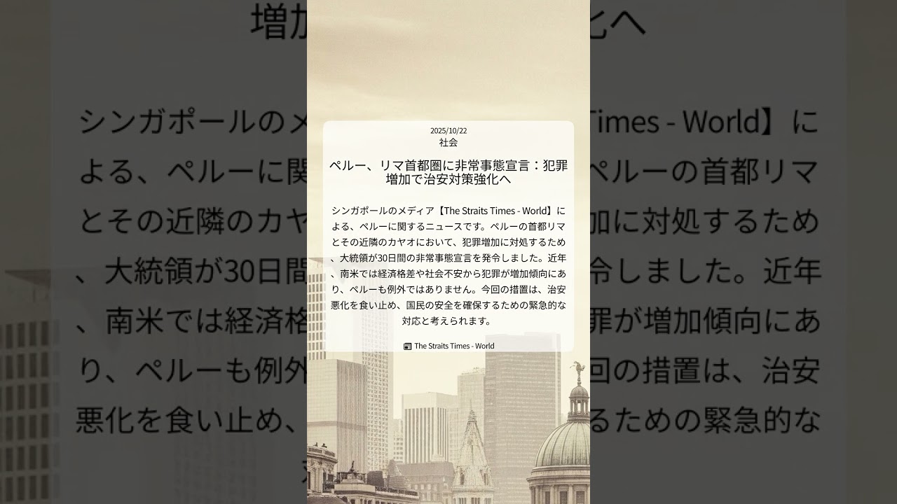 #ペルー #非常事態宣言 #リマ #カヤオ #治安悪化 #TheStraitsTimes #TheStraitsTimes-World #社会 #20251022 #Shorts