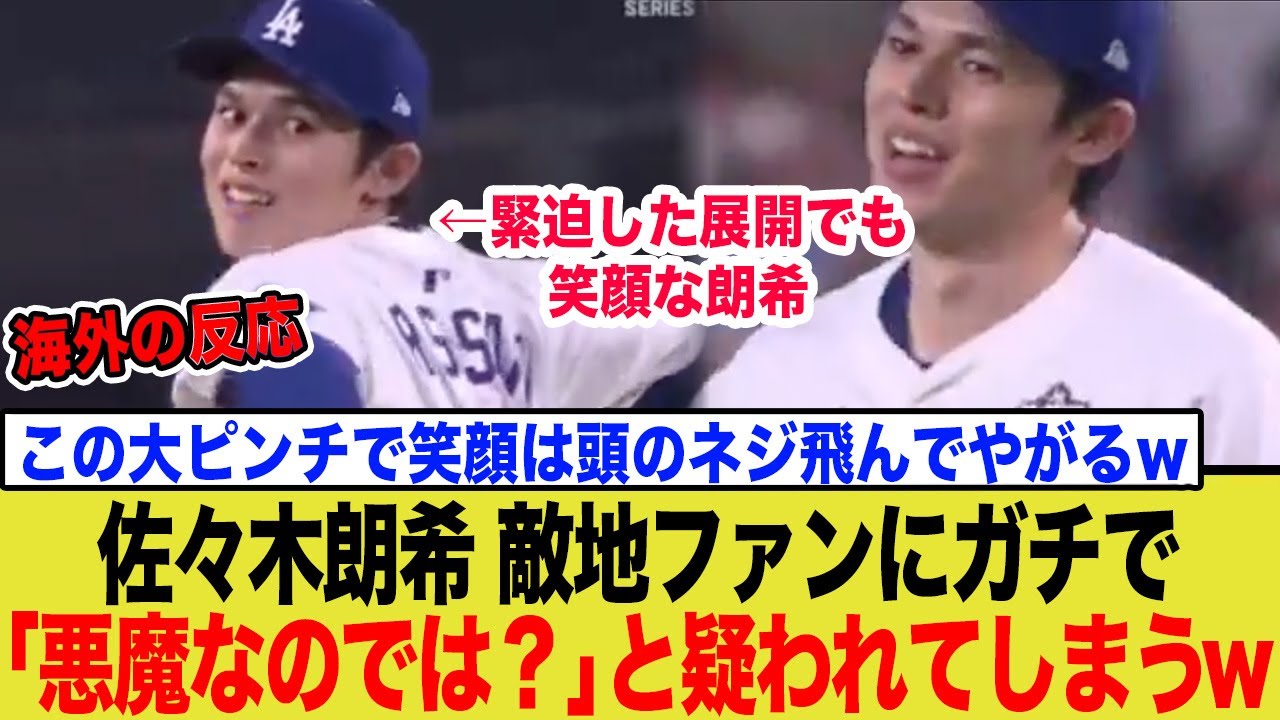 【海外の反応】佐々木朗希、Wシリーズ最大のピンチで見せた”悪魔の微笑み”に敵地ファンを恐怖にwwwww