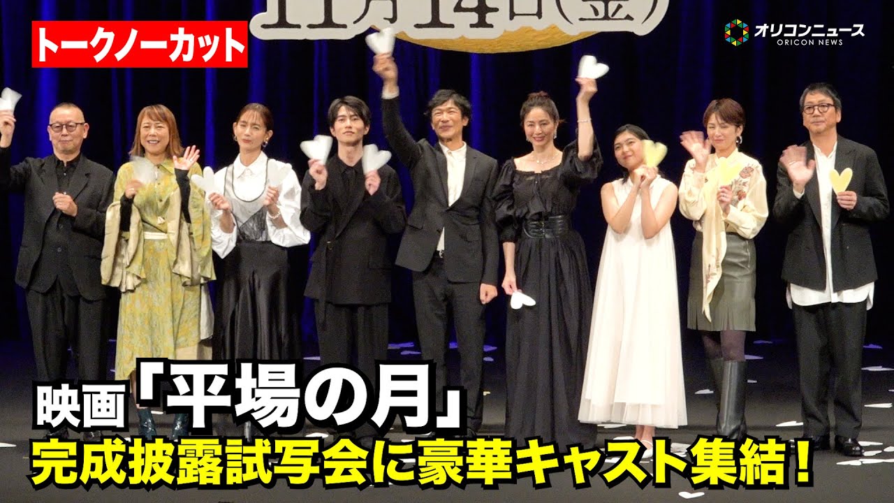 大きな拍手でお迎えください。 戻れないあの日々が [音楽] [拍手] 坂本さんさ [音楽] 帰り道で止まりの人さん [音楽] [拍手] [音楽] は森さ [音楽] 最後に信監督です。 [音楽] [拍手] [音楽] 映画平の月キャストスタッフの皆様です。 [音楽] もう一度大きな拍手をお願いします。 戻れないのがの中 大きな満月の前に皆様にお集まりいただきました。映画平場の月 11月14日 公開いで今日は皆様に一言ずつまずはご挨拶をいただきたいと思います。 まずは妻と別れ地元に戻って印刷会社で働く主人公青検証酒井正斗さんお願いします。 皆さんこんばんは。酒井正斗です。すごいメンバーと共演したんだなと改めて思っております。あのなんか楽しそうな映画になりそうな感じしません?このメンバーね。本当に素晴らしい映画だと思います。どうぞ最後までごゆっくり楽しんでください。よろしくお願いいたします。 [拍手] [音楽] ありがとうございます。では続きまして酒井さん演じる青が中学時代に思いを寄せていた藤洋子役井川はかさんお願いします。 [拍手] え、皆様こんばんは。 え、ちょっと肌寒くなってまいりましたけれども、まさに平場の月の撮影といえばこの寒さが 懐かしくて、この世界観がやっぱり冬にこうこれから向かう時に公開を迎えられて本当に嬉しく思っています。今日お客様に見ていただくのが私たち初めてで本当に今日この日を楽しみにしていました。え、今日は短い時間ではありますけれども、え、どうぞ皆さん楽しんでっください。どうぞよろしくお願いいたします。 ありがとうございます。続いて中学時代の青検証坂本さん。お願いします。 [拍手] え、こんばんは。中学時代の青章を演じました坂本です。と、ようやく皆さんにちょっと先にあの見ていただけることがすごく幸せです。楽しい時間になればいいなと思ってます。よろしくお願いします。 [音楽] ありがとうございます。 え、続いて中学時代の藤洋子役式かさん、お願いします。 はい、皆さんこんばんは。中学時代の藤洋子を演じましたです。本日はお集まりいただきありがとうございます。今日こうしてこの場に立つことができてすごく嬉しいです。本日は短い時間ですがよろしくお願いします。 ありがとうございます。 続いて井川さん演じる藤の妹みっちゃん役中村ゆさんお願いします。 え、皆さんこんばんは。中村ゆりです。え、なんと井川はかさんの妹というなんと光栄な役を務めさせていただきました。え、みっちゃんという役で今回出させていただきました。今日は楽しみましょう。よろしくお願いいたします。 [音楽] [音楽] ありがとうございます。 続きまして、青が務める印刷会社の同僚で、また中学時代の青と素藤の同級生です。安罪知恵役つ木鬼子さん、お願いします。 はい、よろしくお願いします。つ木鬼に子です。えっと、普段ね、あの、パチンコ店のライトをよく浴びてる方が多いんですけれども、こういうね、また華やかなライトもとっても嬉しく思ってます。公栄です。俳優業って大好きなわけ。 [笑い] すいません。よろしくお願いします。 ありがとうございます。さあ、そして続きまして青の元ですね。上村水役瀬み子さんお願いします。 [拍手] はい、皆さんこんばんは。吉瀬子です。え、今日は短い時間ですけれども楽しんでいってください。 ありがとうございます。え、続きまして青と藤の中学時代の同級生です。青とは今でも交流があります。 江口強し役大森直さんお願いします。 あ、どうもこんばんは。え、大森直です。え、酒井君エンジェルオの、え、非常にちょうどいい同級生を演示させていただきました。え、今日は楽しんでってください。 ありがとうございます。そして本作のメガホンを取られました同意信。お願いします。 え、監督の同意です。今日はありがとうございます。 えっと、ちょっとあの、久しぶりに今日こうやってキャストの方と会えるのがもすごく嬉しいんですけど、あの、女優人がもう仕上がりすぎてとてもこう平場の月っていうもう映画とは思えないんですけど、もう鬼子さんはパチンコ屋の格好のまま来ていただけちょうど良かったぐらいなんです。 山でくればよかった。 あの、ま、そういう意味でちょっと、ま、今日あと初めてあの、一般のお客様に見ていただくという機会なので、そういう意味でもすごい緊張していますが、あの、是非楽しんで帰っていただければと思います。よろしくお願いします。 ありがとうございます。もう時間が許す特別な時間をね、作っていきたいなと思っていますが、ここから早速皆様にお話を伺ってまいります。スチールの皆様はここからフラッシュなしの撮影でご協力お願いいただければと思います。よろしくお願いします。 ではまずは酒井さんお話伺いたいと思います。人足先に映画もご覧になってると思いますが、そのご感想と今日皆様に見ていただけるその思いも是非聞かせてください。 感想は僕以外良かった。 