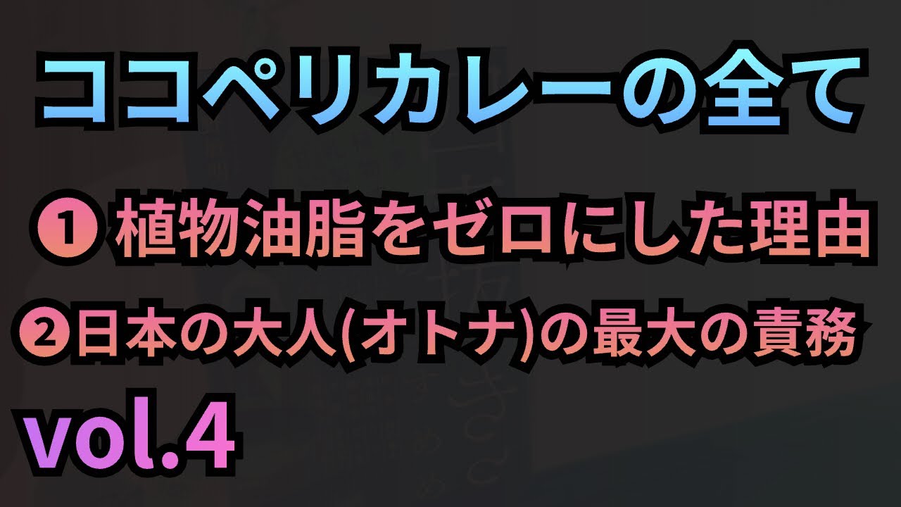 ココペリカレーの全て Vol.4▶︎ ❶ 植物油脂をゼロにした理由 ❷ 日本の大人(オトナ)の最大の責務