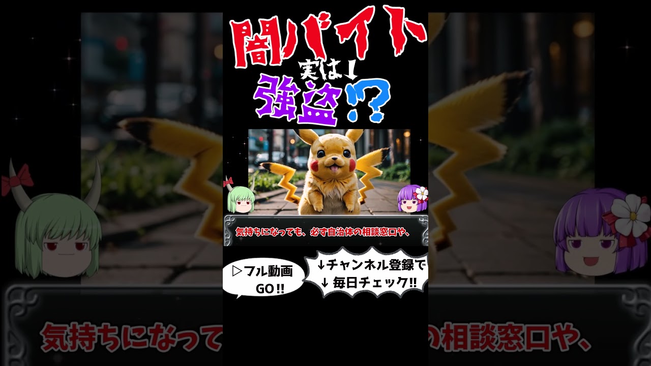 視聴者のみんなもし募集を見かけたら絶対に近づかないこと。そしてもし経済的に困っていて笑にもすがりたい。気持ちになっても必ず自治体の相談窓口やハローワークなど公的な期間を利用して 1人で悩まないで。 この動画を見て少しでも危ねえと思ったら周りの友達や家族にも教えてあげてくれよ。 y