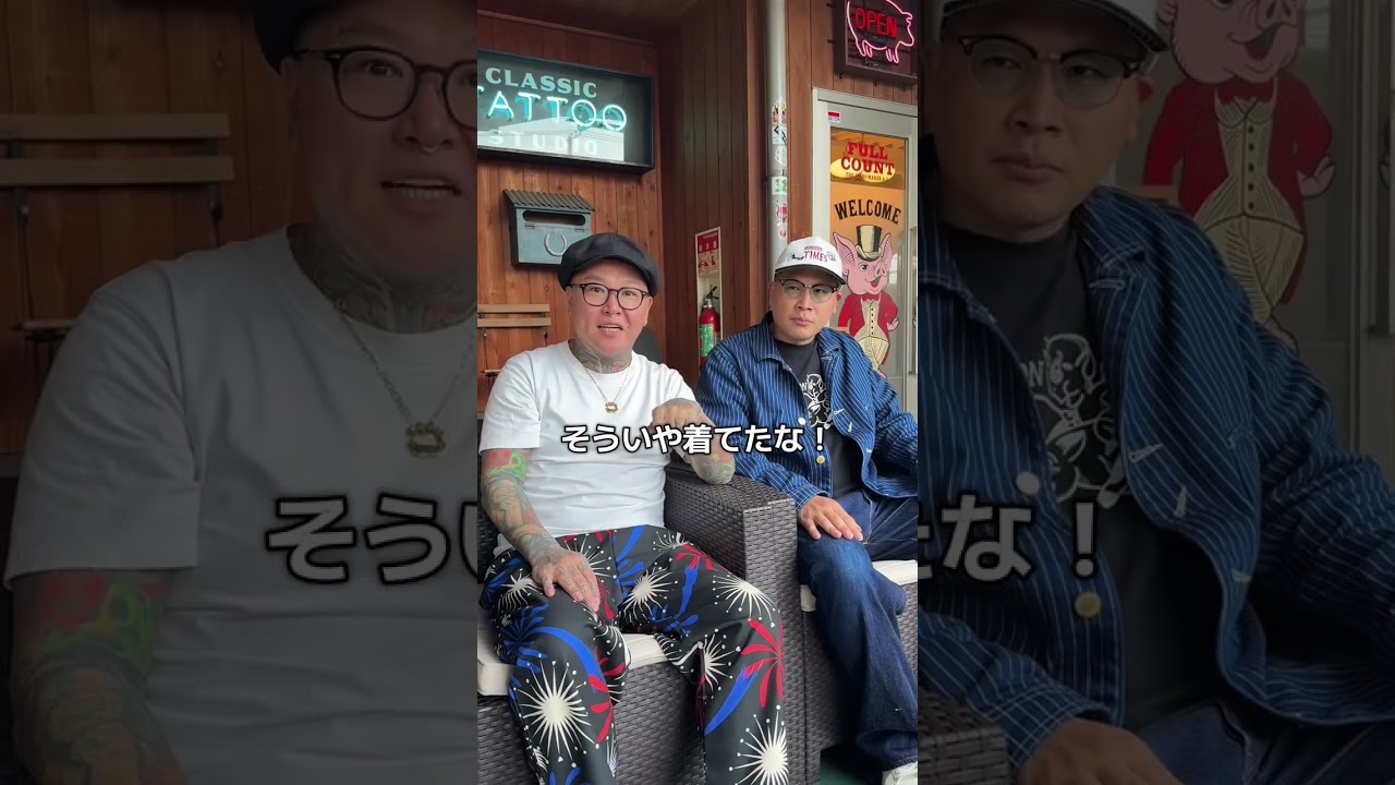 ありがとう。 助けて欲しいんですけど、僕ちっちゃいんすよ。 知ってる で痩せてんすよ。ちっちゃくて痩せてても似合うファッションって何なんですか? え、まずカルチャーからだよね。大切なのはどういう洋服が来たいか。なぜそれは来たいと思ったのか。 男らしい格好がして。 男らしい。単純に言ったらあれだよね。自分の持ってないところを補いたいってことだよね。 そうですね。 オーバーサイズとか選びがちでしょ? はい。 え、全然オーバーサイズなくていい。ジャストサイズがいい。派手なとか来がるでしょ、きっと。 あ、来がります。 コンプレックスによって男らしさを求めるとオーバーサイズだったりとかそういう派手のガラもに行きがちなんだよ。やかっぽいやつとか。 あ、そうですね。 そういや来てたな。それこそ 今日来てる格好はだいぶいいんじゃない? ありがとうございます。 ワークパンツで元々のそのストリートカルチャー拾って靴はスリ 1本でこれかなんか あ、そうです。鳳凰ですね。 歩王か。 はい。 ま、そういうところでお前のそのヤンキーのルーツも拾ってるし、みんなあの赤ティで少しワンポイントを入れて最近うちに入ってきてその環境で そのデニムジャケットとか着てるわけじゃん。 はい。こうですか? 本当はこうか。 はい。 どれが好きなカルチャー?ルード系、ワーク系だよね。 そうですね。 要するに、えっと、2000年代とか 1990 年代後半のストリートだよね。元々が 好きなのが それプラスうちに来ることによっていわゆるアメカと言われてるヴンテージを組み込んだってことだよね。 そうです。 安心してください。 もうあのコンプレックスは解消されてます。 ありがとうございます。 好きなの来てるでしょ。 だから身長がちっちゃくて細い人はジャストサイズかもしくはワンサイズアップぐらいでうまいこと切ること で何よりも大切なのは自信を持って切ることだな。 はい。はい。 え、コンプレックスを持ったまま洋服を切ると結局本当にただの服を着てることになっちゃうから 自信を持って身にまとうっていうことを意識するといいんじゃないでしょうかってさ。 ずっと隣で斎藤さんが口を動かさずに 俺に耳移ちしてたから斎藤さんに拍手 はい 言ってやりましたよ。斎藤さんどうすか? ありがとうございます。