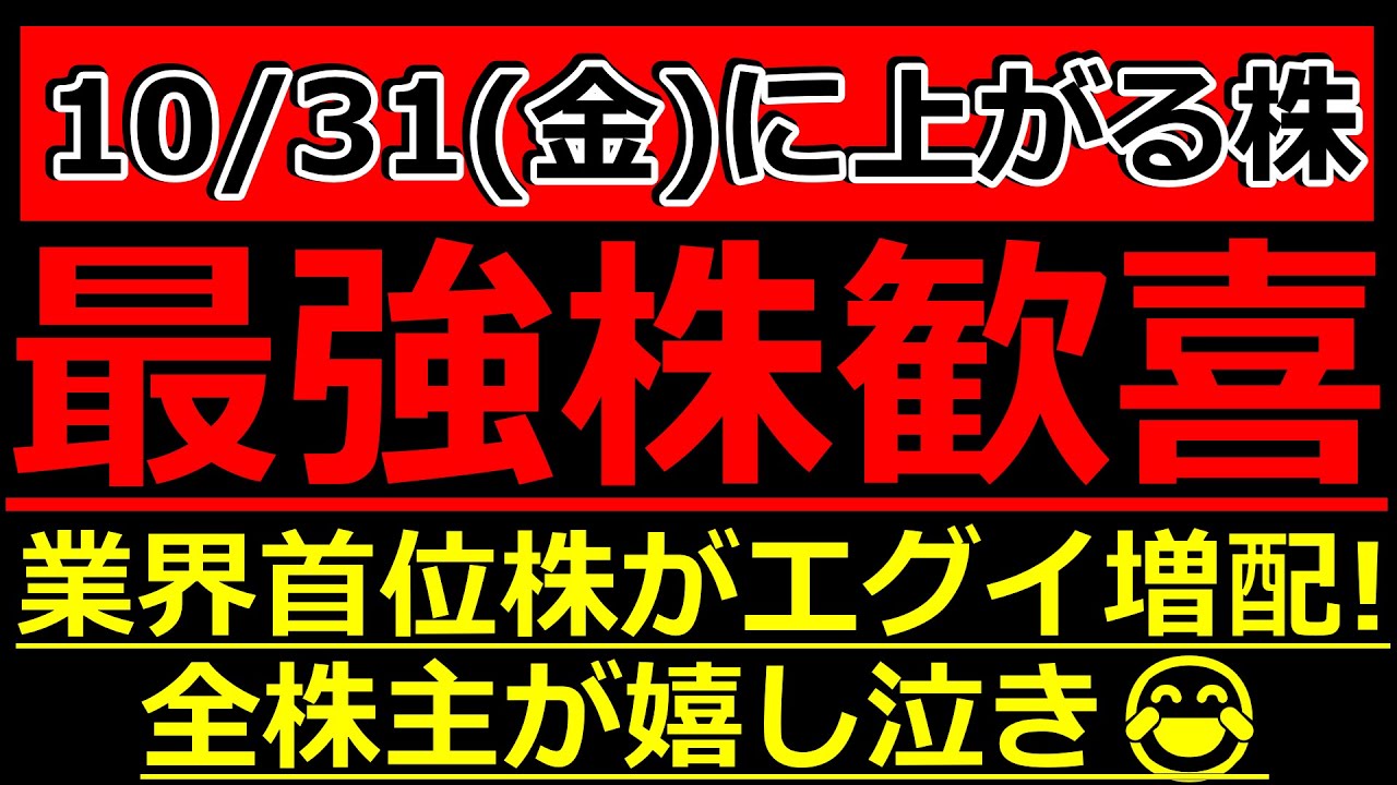【オメデトウ!全株主が嬉し泣き!あの業界首位株がまさかのエグイ増配かましてきたぞ!】10/31(金)に株価が上がる株