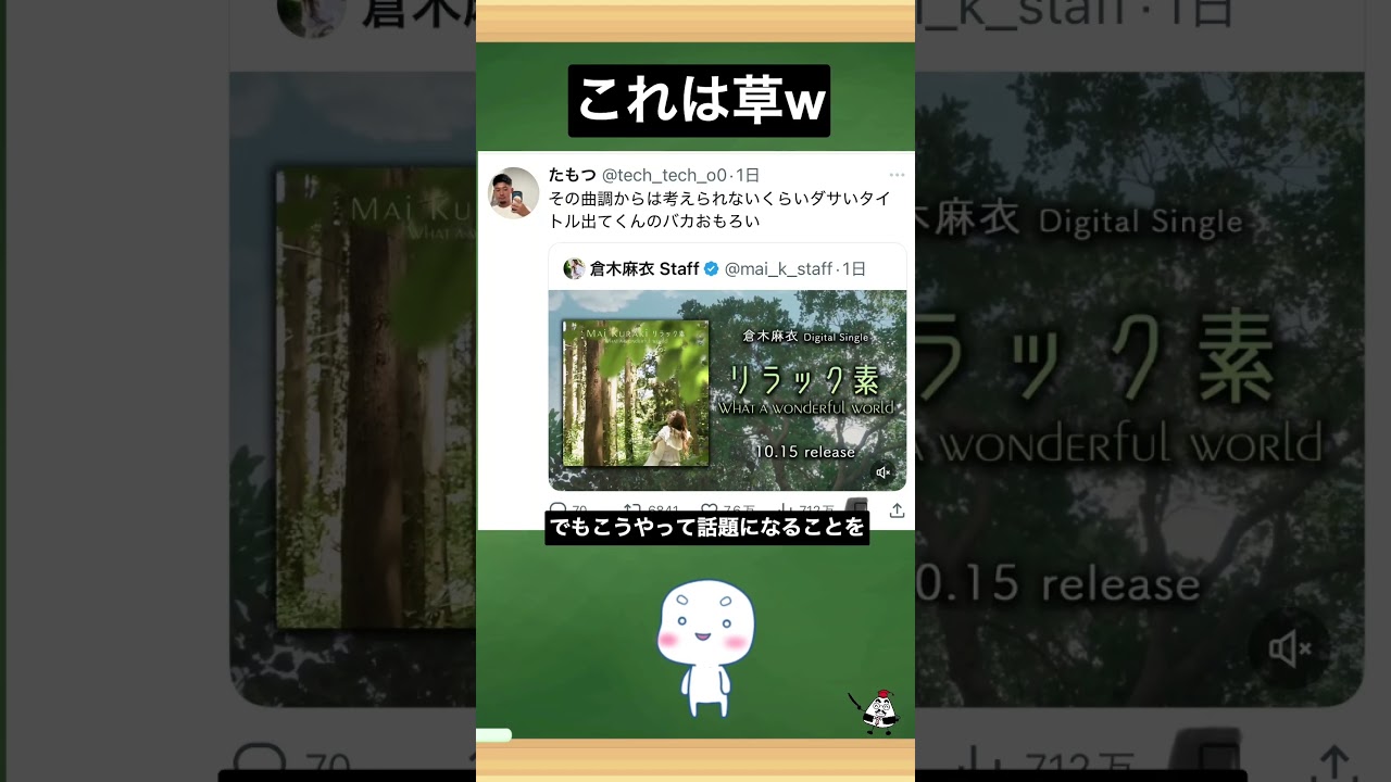 倉木麻衣さんの新曲『リラック素(WHAT A WONDERFUL WORLD)』がネットで話題に。