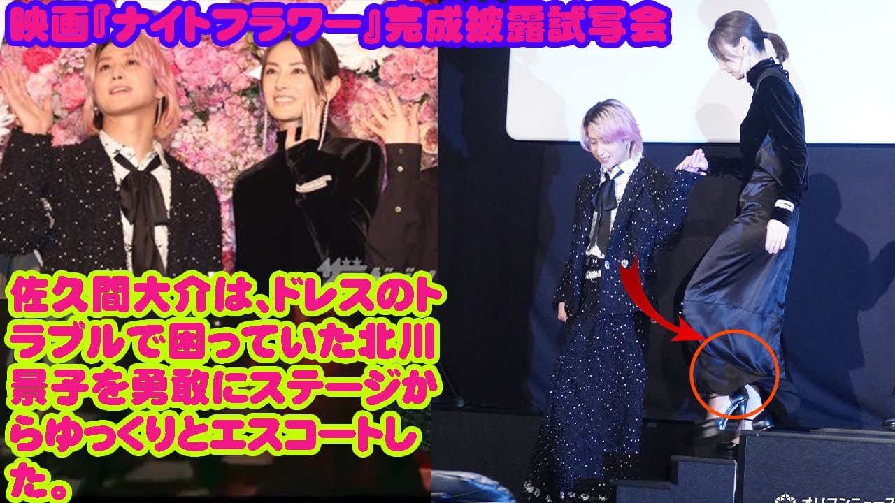 佐久間大介は、ドレスのトラブルで困っていた北川景子を勇敢にステージからゆっくりとエスコートした。