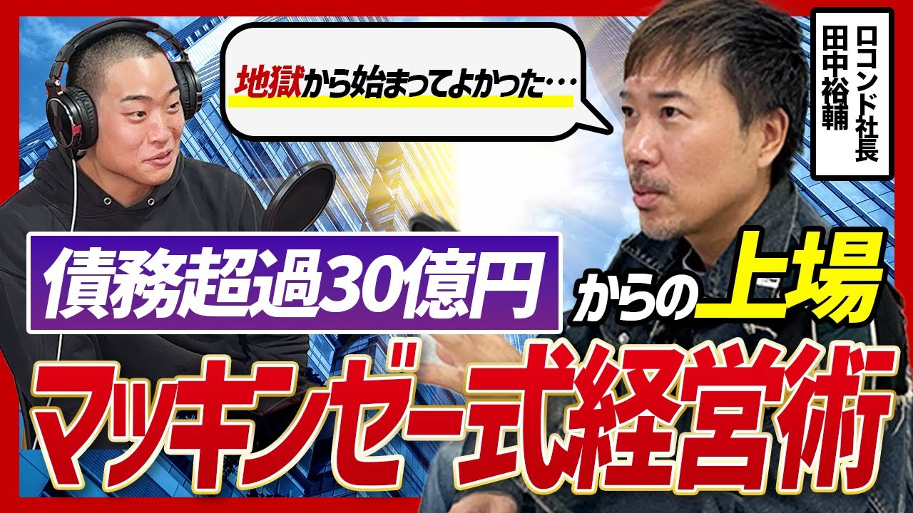 M& に書いたらもう私ませんからって。ちょうどえっと今ロコンド作ったばっかだったら [音楽] 1回これちょっと一緒にやらんかい。 1 年ぐらいやってで次の業しようかと思った矢に東し日本大使です。 [音楽] 債務釣化30億ぐらい 黒するまでお金を集めながら成長させるなんかただそれだけをピに考えたというか 3から5年ぐらいの僕は社長として 20 点というか上場企業として初めてと思うんだけど黒字の中であえて赤字 10 億円を目指しますっていう計画を出しためっちゃ反発 フルぼっこペスが2日連続 えが持つのがすご YouTuber さんあのヒカルさんとのコラボであったりとか田中さんが見極めてるんですか? あれもじゃちょ とどういうことがあったかいくとまで 12社ぐらいM アンドレイしてきて全部成功します。 ああ忙しくて全然勉強できない。プログリットなら忙しい経営者でもアプリ [音楽] 1 つで完結できる。私も半年前から利用させていただきコンサルタントの奏をして毎日 2 時間勉強しています。毎日葛藤しながら勉強し成長実感がめちゃくちゃあります。 経営者の英語学習ならプログリ概要欄から是非チェックしてみてください。この放送はご覧のスポンサーの提供でお送りいたします。どうもしです。こんにちは。はい、というこで今回は、えっと、ロコンドを運営する [音楽] J グループの田中社長にインタビューさせていただきます。 以前寝台の方で出演いただいて、あの、 その時に、あの、依頼させていただい、 あの、オフィスに実際行って YouTuberのヒカルさんとかと一 時期、え、コラボしてすごい売上を立て たりとか、あと元々田中さんがその入社し た頃に借金が10億で赤字が10億ぐらい の会社だったのを再建したっていうところ を、あの、記事で拝見したので、その辺り のお話をお聞きしたいなと思っております 。ということで、行ってきます。 [音楽] ということで、田中さんのオフィスにお邪魔しております。よろしくお願いします。 すごいおしゃれなオフィスでこのロコンドチャンネルここでいつも撮られてるんだなっていうのすごく視聴者としてすごくあの嬉しいです。 ありがとうございます。 はい。 じゃあ、あの、今回田中さんの、あの、創業でと、あと創業からのあの、経営者としての人生と、あと最近 M&も注力されてて、 ちょうど先週リリースのエマ& A のあの、お話とかも含めてちょっと色々聞いていきたいなと思っております。 じゃあ簡単に最初にちょっと自己紹介と言いますか、お願いしてもよろしいでしょうか? 自己紹介で今がですね、えっと、J グループあのロコンド、え、運営取れ会社の社長とあとリーボックジャパンの、えっと、社長を務めている田中と申します。お願いします。 はい、よろしくお願いします。 田中さん、元々新卒で罰金税前に入られて、その後ご自身さん、創業 参されたっていう形だと思うんですけども、元々その企業とかをしようと思ってたんですか?その高校生きとか、 高校そうですね。高校中高生、スキー部でで、あの東方って学校あったんですよ。 霧友って書くんですけど。 で、それであの学校から歩いて 5分のとこに1 つ橋大学ったんで、ま、そこにえっと行ってはい。はい。そうだ。近いから行ける大学じゃないですけど。 ま、行きましたと。でも当時から何も考えてなかったんで、とりあえず本当近いから行ったような感じなので、あんまりこうなんか別に大学戦の時も将来ビジョンもなく で、マ近勢でとか外地系のことも僕は大学 3 年生まで知らなくて、ま、あの、うち父上からの銀行員なんで、 ま、銀行員とかなとか思ったんですよ。 でもやっぱ大学23、3 年生ってこと考えるじゃないですか。 どうしようどうしよう時になんかたまたま大学の授業で税の元 の方がこうなんかロジカルシンキングみたいな授業やっていて そこで初めてまでマ金税を知りました。 た、ま、そん時初めては、ま、そういうことは知ったぐらいなので はい。 もう企業なんて全く思ってもないしでおすごいなと。じゃ、まず外系行きたいと思ってマッキーできましたと。 はい。 で、入ってからもそんな企業なんと思ったこと一切なく、 あの、やっぱマ金で初心者ってあの DNA難波さんとか あの、OC 高島さんといっぱいいるんですけど、私入った当時まだあんまり企業企業してなくて、 あ、そうなんですね。 で、僕自身もあとそのマ金税怖いんですよ。 なんていうか同期がえぐいというか。 あ、優秀な本当日本の優秀な人たちが集まってる印象があります。 そう。で、僕の時ってま、10 人ぐらいだったかな。だから今結構もう何十人も採用してるんですけど僕の時 123 人で僕以外もう基本的に東大のなんか博士とかいっぱいいたりとか、 あとオックスフォードハーバーみたいな、もう怖い怖いみたいな感じで企業なんてこがましくて、とりあえず何年生き残れるかなみたいな感じでマキ勢にまずいましたと。 5 年間でした。えっとね、最初にまず4 年半行ってそこ