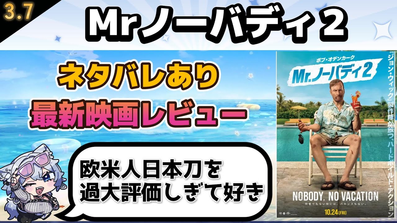 はい、皆さんこんにちは。え、今回こちら ミスターノーバディ2を見てきましたので 、ネタバりアイ無編集で好き放題喋って いくやつをやっていきたいと思います。え 、フィルマークスの評価が3.8ですね。 私の評価が3.7ですね。3.7だいぶ 高いですね。面白かった。もうこのハッチ がさ、一番最初からもう正体も分かってる し強いの知ってるからもう最初っから暴れ まくりっていうね。 ワンの方がストーリーとしては、ま、 ちょっとなんかちゃんと段取りを踏んでる かなっていう感じがしたけど、もうみんな 見たいのはハッチが暴れ回るところでしょ みたいなそんなところでなんか作ってる 感じがしましたね。ま、もちろんもちろん あのハッチが暴れてるところあの見られて 大満足ではあるんですけれどもはい。で、 その公開前日の配信で私、あの、予告編が さ、もうだいぶ派手なところ見せてたから 、もうこれ予告編でもほぼなんか派手な とこ見せちゃってないって思ったけど全然 そんなことなかったですね。もう5倍 ぐらい面白いとこいっぱいありましたね。 あの、遊園地とかね、あの、ま、船の上で のバトルとかも面白かったけど、遊園地 すごかったね。あの、いろんなトラップを 配置してさ、なんかもう用意したトラップ がすっごい都合よくあのね、あの活用され ていくっていうね、ああいうのでいいんだ と思います。なんかここでなんか都合良 すぎだろっていうのもちょっとやぼかなと 思わせるぐらいにはもうはちゃめちゃやっ てくれたんで、まあまあこれはこれで 良かったのかなっていう感じがしましたね 。はい。なんか忍者も出てきたしね。あれ 、お兄ちゃんだっけ?弟だっけ?ちょっと 覚えてないんだけど、あのなんかブレイ、 ブレイドみたいなあの日本と思った人が出 てくるで。大体さ、この欧米県の日本の そのなんか扱いとしてはもう何でも切れ ちゃうみたいな。ほら、まちえて、まちえ てもさ、サクサク切られてたし、なんか さっきまでつばずり合いしてなかったって 思ったんだけど、なんか切れるシーンでは めちゃくちゃ切れてましたね。はい。で、 銃と頭をね、スパーンって切ってね、 あそこも私大爆笑です。もうニコニコって 。はいはいはい。海外の方って日本島で何 でも切れちゃうシ好きだよねみたいな。 はい。大満足でございました。で、今作 あのクリストファーロイドさんあのバック toザフutチャーのドッグやってた人 まだまだ元気で良かった。もうなんか生存 報告みたいな映画でしたね。はい。ごめん 。あの、詳しい人は、あの、他の映画にも 出てますけどみたいに言ってくるかもしれ ないけど、なんか私からすると、あ、まだ 元気でやってるんだ。よかったっていう、 あの確認の場みたいな感じでしたね。なん かガトリング、あの、バンバン打ちまくっ て良かったですね。はい。あ、そんな感じ かな。なんか語ることないんだよね。もう なんか最初から最後までアクション バリバリで最高っていう感じの映画でした ね。はい。あれ?今作さ、カーチェース なかった?もしかして。あれ、チェース なかったっけ?あれ、ちょっと待って。 大体さ、アクション映画ってさ、1回は カーチェース入れると思うんだけど、今作 なかったか。珍しくない?え、あったっけ ?あ、ごめん、ごめん。ちょっと思い出せ ないわ、なんか。うん。うん。ま、まあ、 まあ良かったです。はい。あとあれ、えっ と、トムハンクスさん出てると思ったら あれ、トムハンクスさんの息子さんなの? あれ、あれかな?なんか役者さんやってる んだよね、確かね。うん。いや、なんか、 え、なんかこの顔はトムハンクスって思っ たんだけど。あ、今見るか。えっと、あ、 この人何?前作ももしかして出てました? あれ?前作出てない。 あ、ごめん。前作出てないかも。えっと、 今作からかあ、コリン、コリンハンクス さんっていう言うんですか、これ。へえ、 リアルタイムで調べるなっていう話です けど。はい。あとは、ま、あれですね、 お母ちゃんが強かったですね。で、なんか スナイパーライフルみたいなの持ってた から、あの、なんかなんだろうな、なんか 遠くから助けてくれるのかなと思ったら 意外と近距離からあの、狙撃してくれて、 ああ、結構近いんだって思いましたね。 うん。あとはなんか、なんか敵がさ、なん か女2人組のやつ出てきたじゃないですか 。あいつらなんかめちゃくちゃ強そうなの にああ、なんかあっけなくちょっと死ん じゃってちょっともったいないなって思い ました。はい。あとはね、ラストのさ、 エンドロールの付近でさ、あの旅行の シーン、旅行のシーンのさ、楽しそうなさ 、イラトって、イラストじゃないや、楽し そうな写真をさ、スライドショで見せてさ 、なんかあったかも映画がめちゃくちゃ 楽しかったみたいな気持ちにさせるのやめ てほしい。あれなくても普通に楽しかった んだけど、なんかあれ見てると、あ、なん かすごいいい映画