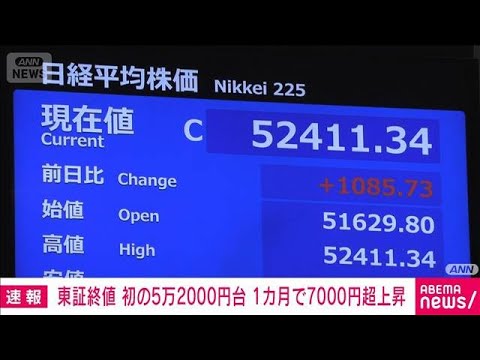31日の日経平均は午前の取引から大きく上昇し、史上初めて5万2000円台に乗せました。
