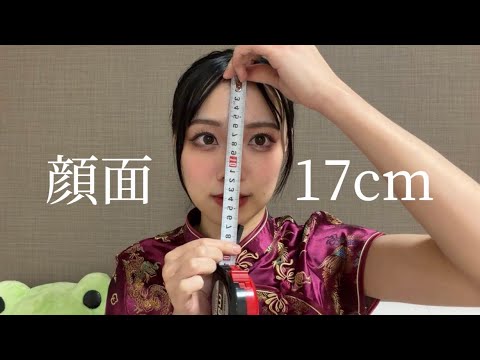 こんにちは。いよんちゃんです。 えっと、私なんか 自分のチャームポイントでもあるんです けど、顔がすごい小さいってよく言われ ます。で、ま、メジャーこれ持ってきたん ですけど、メジャー これで測るとこここね、でこ、ここね、 ここからここだね。で、こ、ここです。 はい。 じゃん。 顔面17cmです。はい。ただの自慢です 。今日は。はい。で、マスク。これ普通 サイズのマスクなんですけど、大きい サイズとかじゃなくて普通です。これ普通 サイズ。普通サイズだと普通にこの顎に 合わせてここね、顎にこう合わせたらもう 本当に本当は もう こんぐらいなんですよ。で、でもこれじゃ 見えないので下げてこうやって使ってるん ですよ。なんで私顔多分すごいあの顎長い やつやと思われてんのかなって思ってい ます。ちなみにあのこのタイプの ちっちゃいやつはあんま売ってないんで このタイプを買ったんですけどこれは 小っさいサイズです。実際サイズでどんな 感じかと言うと これこういう感じです。これでもちょっと でかいですね。うん。ちょっとでかい。 このタイプはちょっと息しづらくて私 あんま好きじゃないんですよね。あと肌が よく荒れるんであんまり好きじゃない形 です。なんでちょっとね、白色でこのの タイプ欲しいんですけど、どこに売ってる かわからない。アマゾンとか売ってるか? さすがに。 めっちゃ普通にだって。ここは顎。 もう眉毛のとこまで鼻の方の届いちゃう づらいで結構悩むのがパックですね。 タックすごくて、あの、余る部分が多いと 重いんで、ここが 剥がれてきちゃうんですよ。ララランって 。それがちょっとね、結構悩みですね。で 、本日なんでこんな格好してるかと言うと 、今日は実はこれ撮ってる日がハロウィン で、あの、すいません。ついでにね、配信 のついでに撮らしていただきましたという ことで、カエルさんがそう言っております 。はい、ありがとうございました。