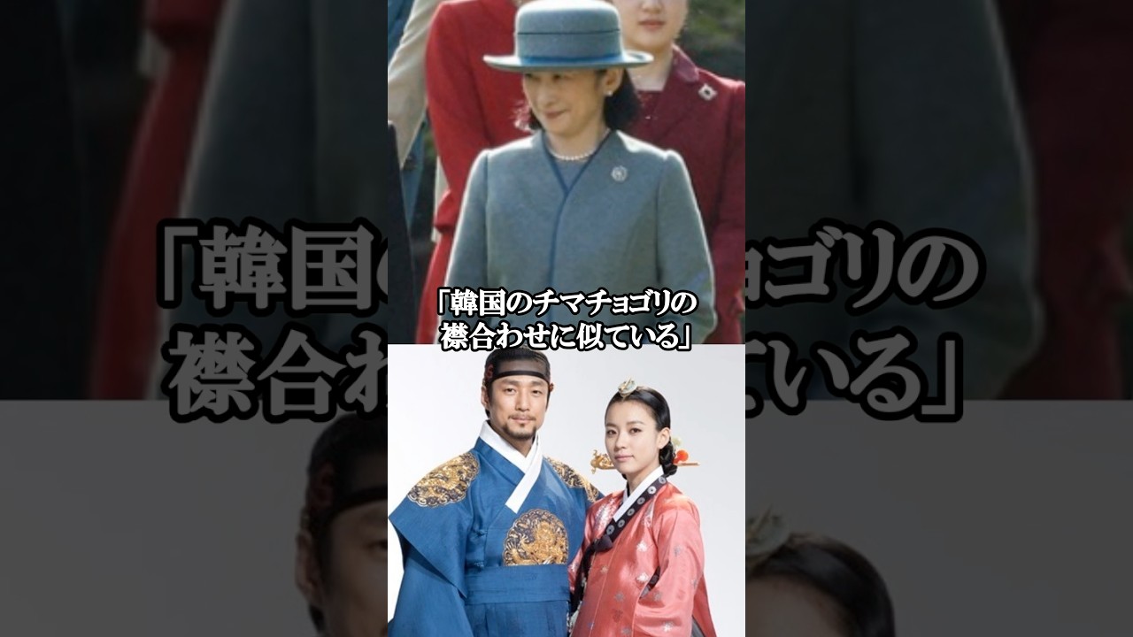 空気を読まないき子様の円会2025年秋 の円会各会の厚労者たちが集う宮やかな 社交の場で注目を集めたのはきこ様の ファッションだった。この日のき子様は 淡いグレイストーンの予想で登場。しかし よく見るとその衣装の合わせが左が上。 つまり男性の左前。通常女性服は右が上に なるのが常識だ。遠会の華やかな空間の中 で1人だけ男前し立ての予想以外質に 浮かび上がっていた。SNSではなぜ左前 ?男性スーツみたいと話題に中には韓国の 千まち堀のエリアに似ているとの声まで 上がり騒ぎが広がった。もちろん韓国的な 意図があるとは考えにくいだがそうした噂 が再念するのも無理はないというのも結婚 式のウェディングドレスが韓国の伝統衣装 に似ていると言われたことがありの人前 たちもその連想を呼んでしまったのだ。 さらに会場では競争 競争こ様が競争を軽装馬と読み間違える一幕もあった。これまでも ここに表彰を受けられた方々を始め全ての人々が 方々を肩人をひ々ひ々ひ々ひと読むなど言葉の使い方に小さな違和感が見られることがあった。緊張のありかもしれないが日本語にどこか不自然さを感じる瞬間が多い。まるで言葉も服装も周囲と少しずつずれているようだ。 [音楽] 会は皇族方が国民と親しく交流する場で あり、同時に格式と調和が求められる行事 。他の女性皇族が季節感や全体の式張を 意識した予想いを見せる中、き子様だけが 違う方向を向いているように見えるのは 皮肉なことだ。意図的か偶然かは分から ない。だが服の合わせも言葉の選び方も どこか周囲と噛み合わないように感じ
