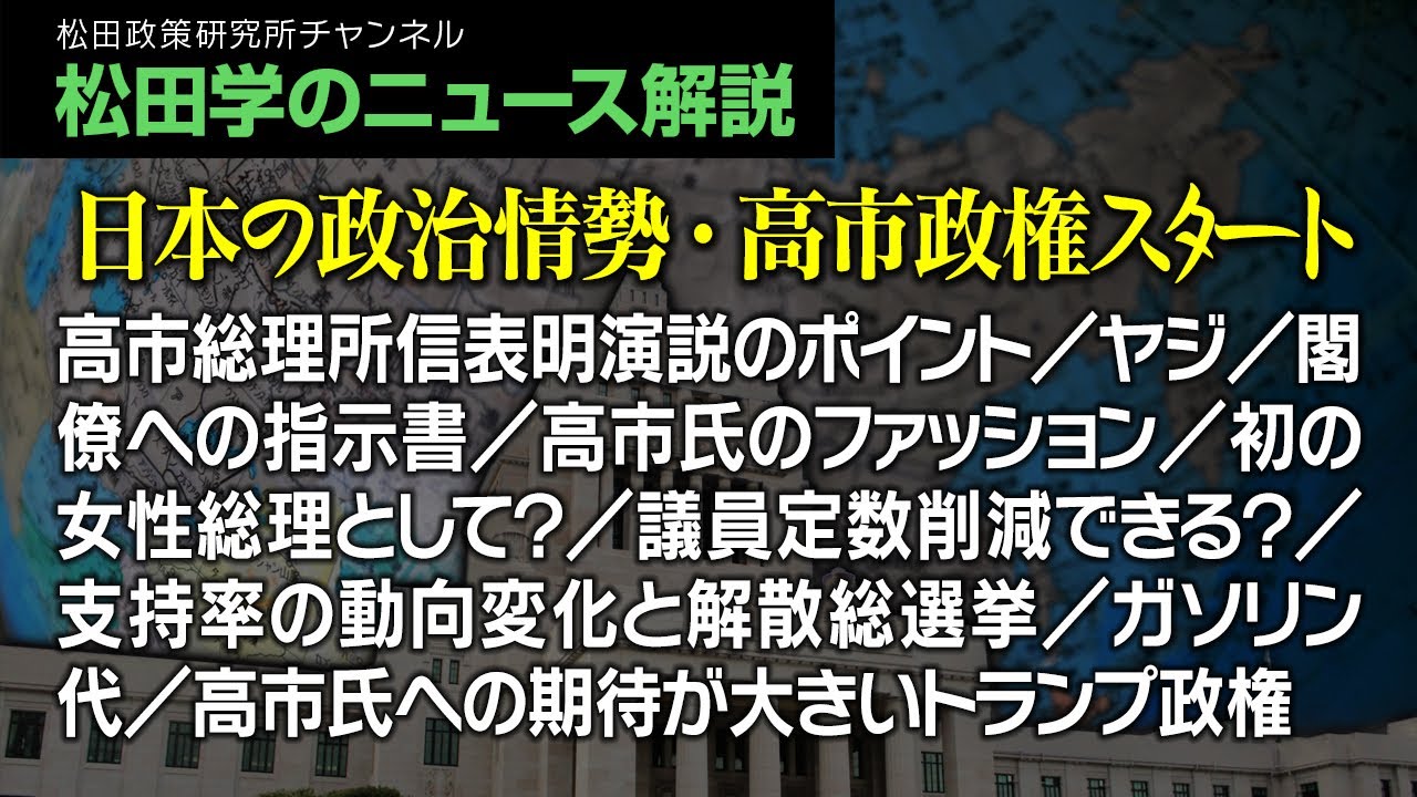 松田学のニュース解説【日本の政治情勢・高市政権スタート】高市総理所信表明演説のポイント/ヤジ/閣僚への指示書/高市氏のファッション/初の女性総理として?/議員定数削減できる?、他