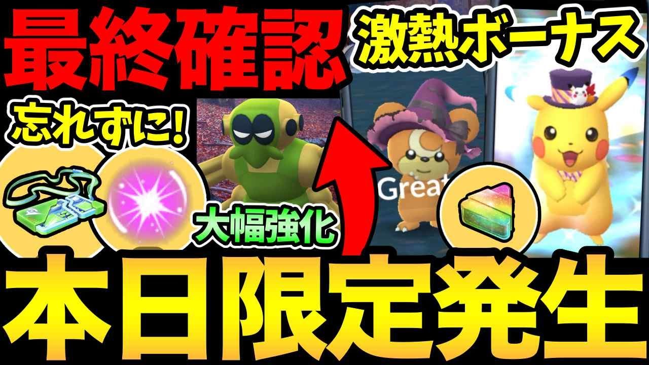 皆様どうも、コペリゴです。本日も諸もろ ニスマトやっていこうと思います。まずは 本日限定のボーナス、次に強化、またMP の準備やリマインドについて話していこう と思います。ハードでまずは本日限定の ボーナスといったね、話してありますが、 え、こちらですね。え、今日はですね、 10月31日で、ま、ハロウィン当日と 言いますかになってきますので、え、本日 限定で、ま、コスポケ捕獲祭りが、ま、 行われるんですよね。え、本日限定の ボーナスが発生いたしますと。でですね、 ま、このね、ボーナスの用としましては、 え、コスムポケモンをナイススロー以上で 捕まえた時に、ま、稀れにではあるんです けど、ま、不思議なアとか、え、不思議な アクセルがもらえるといったはい、 ボーナスがね、もうすでに発生しており ますね。本日まるまる1日限定でこういっ た、え、ボーナスがあります。こんな感じ ですね。バケッチャが不思議なア癖をね、 持つたって感じで、ま、あれですよね。 レイドアワーと似たパターンで、ま、同じ パターンかな。え、ポケモンを掴む時に 不思議なアとか不思議なアクセルが、え、 もらえるそういったボーナスが本日限定で 発生しておりますので、なのでね、もう 本当に今日1日、ま、シンプルではあり ますが、え、やることですよね。今日の 意識としましてはもうコスポケを見つけ たらまずとりあえずタップ。多分これはね 、皆様すると思うんですけど。で、なんか 色違いじゃなくてもちゃんと捕まえて ください。なおかつね、え、ナイススロ 以上といった条件がつきますので。と コスポケを見つけたらタップして色違い じゃなかったとしてもしっかりとナイス スロ以上ね、なんなら金釣りとかが上げて 、え、ちゃんと捕まえるように本日はね、 1日限定ボーナスがありますから、え、 そこはしっかりと意識しておきましょう。 でですね、このボーナスについてね、もう 少し話していきますが、ま、当たり前では ありますが、このボーナス自体はね、 めちゃくちゃ暑いですよね。だってコスポ 系捕まえたら、ま、不思議なアとか不思議 なアクセルがもらえる可能性がありますの で、めちゃくちゃめちゃくちゃ行ってる ことは熱い。え、そういったボーナスでは あるんですが、ただね、これね、確率の話 ですよね。なかなかそう簡単にはもらえ ないんですよね。本当に稀れにって感じで 。うん。あの、そんなに期待はできません ので、え、て感じですから皆様は先に言っ ておきますが、今日確かに暑いボーナスは 発生はするんですけど、そこまであの過な 期待はNGですのでね、コスポケ捕まえて ポンポンポンポンポンポコポンポコ、え、 大量に不思議なアとかね、不思議な アクセルが手に入ると思ってしまうと、え 、全然ね、手に入んな感じでね、ちょっと なんかテンション下がってしまうと思い ますので、え、そこはね、あらかじめ なんかハードルと言いますか、温度感は 低めに、え、設定しておいてください。 ざっくりとした体感としましては、ま、 本当にね、あの、特にあれかな、不思議な 雨に関しましては、え、1時間捕獲頑張っ て、まあ、1個か2個落ちるぐらいかなと いった本当にそのレベルですので、ま、 例年そんな感じなので何度も言いますが、 過な期待は、え、しないようにはって感じ でね、あの、本当ポンポン落ちると思って やってしまうと心折れちゃいますので、え 、そこはね、そんなつもりでよろしくお 願いいたします。あとね、もっと言います と、今日多分全国的に雨予報ですよね。 夕方からかな。なので、ま、ちょっと なかなかしんどい部分もあるはあるんです けど。はい。まあね、え、今日は頑張って いきましょう。あとですね、1点補足情報 でありますが、ま、もちろんね、コスポケ は野生とかにね、たくさん出現はしてはい ますけど、え、ゴーパスの報酬ですよね。 え、ゴーパスハロウィンの報酬にもね、え 、コスポケね、結構いますので、まだ ゴーパス報酬の、え、コスポケポケモン たちをね、捕まえてない場合に関しまして は、え、今日ですね、捕まえとかもちろん お得ですから、え、本日のうちに特に やっぱりあれかな、雨とかでね、ポケ圧 できない時間とかに、え、5パス報酬の コスポケたちを捕まえることも忘れずに 会場ですね、最後にまとめて話しておき ますが、ま、なんかね、色々言ってはき ましたが、ま、そのなんだかんだ言ってね 、え、今日のボーナスっていうのは元々 なかったものですから、ま、元々ね、 コスポケ捕まえても、ま、雨とか、ま、 不思議な雨とかね、不思議な雨癖はもらえ ないんですけど、え、今日は一応稀れにで はありますがもらえる可能性があるので、 ま、その時点でね、嬉しいボーナスでは あります。何度も言いますけど、え、過な 期待はNGではあるけど、ま、あの、熱い ボーナスではあるんで、え、普段よりもね 、ま、気持ち、気合を入れてちゃんとね、 