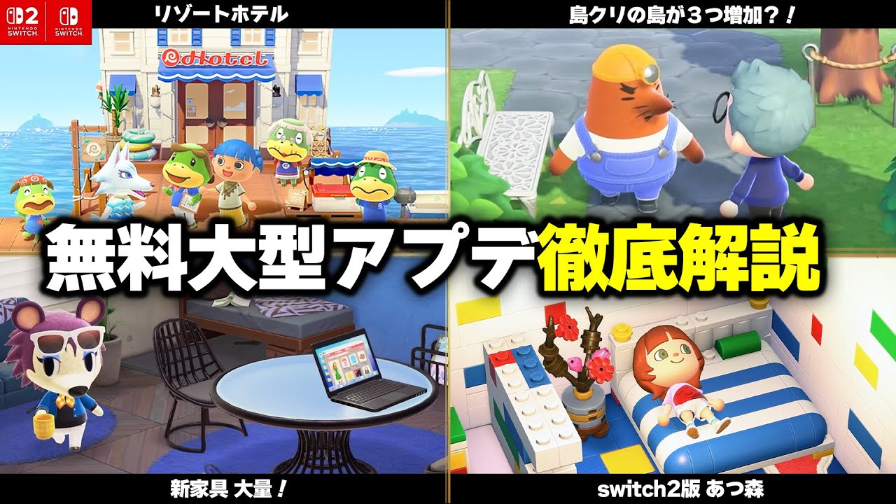 最新情報「switch2版あつ森」と無料大型アプデ決定!リゾートホテルや新家具、夢で島クリなど新要素をまとめて紹介【あつまれどうぶつの森】