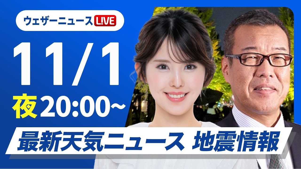 【ライブ】最新天気ニュース・地震情報 2025年11月1日(土) /北日本や北陸は雷雨注意〈ウェザーニュースLiVEムーン・小川千奈/森田清輝〉