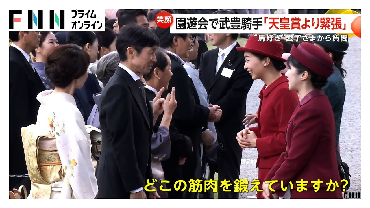 愛子さま武豊騎手に「どこの筋肉を鍛えていますか?」深紅の装いで秋の園遊会にご参加 皇后さまは妻・佐野量子さんに