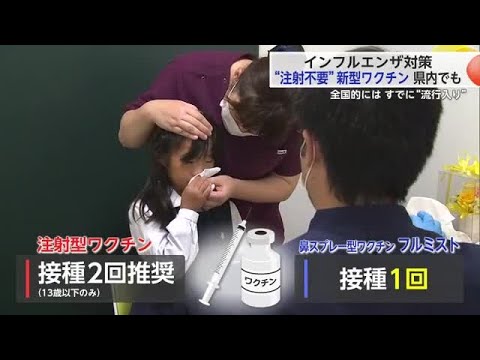 これからの時期、心配なのがインフルエンザ。県内の感染状況は比較的落ち着いていますが、全国的には例年より早く流行のシーズンに入っています。そんな中、「注射のいらない」新しいワクチンの接種も進んでいます。