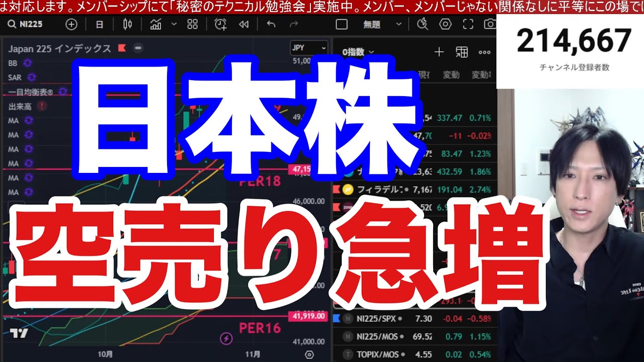 10/28【日本株空売り急増‼日経平均爆上げ継続か。下落サイン見逃すな】ニデック日経除外で大暴落。ドル円152円。米国株、ナスダック、半導体、AI関連銘柄強い‼仮想通貨ビットコイン反発。金先物急落。