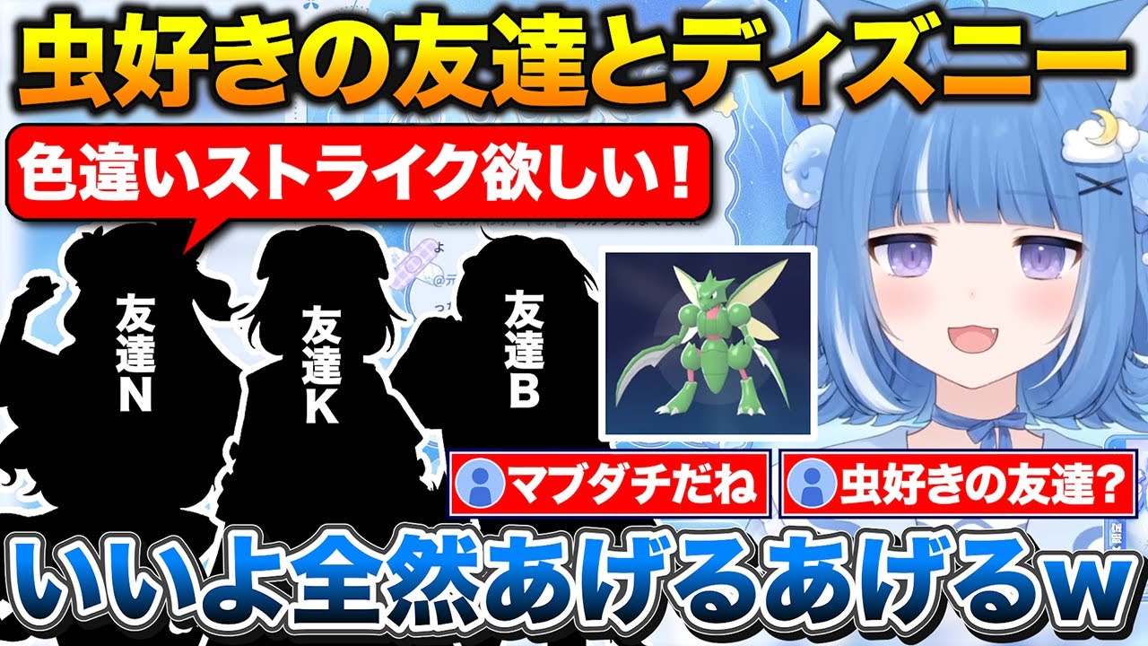 虫好きの友達に色違いストライクをあげたろあちゃん+犬のお友達たちとディズニーシーに行った話【海月雲ろあ/切り抜き】