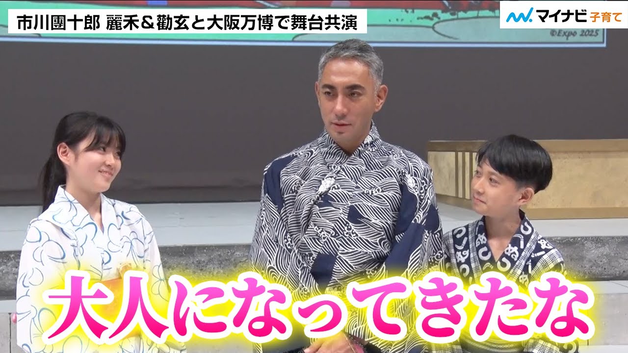歌舞伎俳優の市川團十郎さんと娘の市川ぼたんさん、息子の市川新之助さんが2日、大阪・関西万博で上演された舞台「JAPAN THEATER『SEIMEI』」に親子で共演。上演前に親子3人で囲み取材に登場しました。