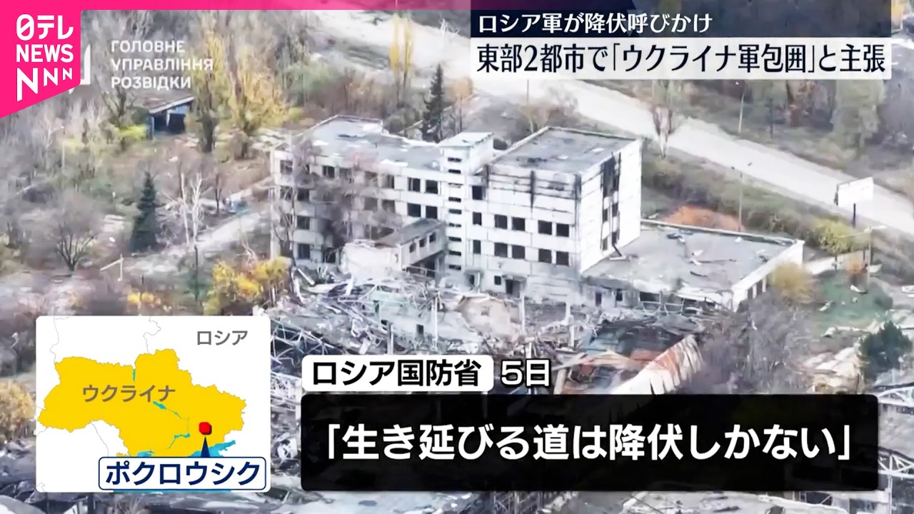 ロシア国防省は5日、ウクライナ東部ドネツク州のポクロウシクなど要衝の2都市でウクライナ軍の部隊を包囲し、甚大な損害を与えていると主張した上で、「生き延びる道は降伏しかない」と呼びかけました。