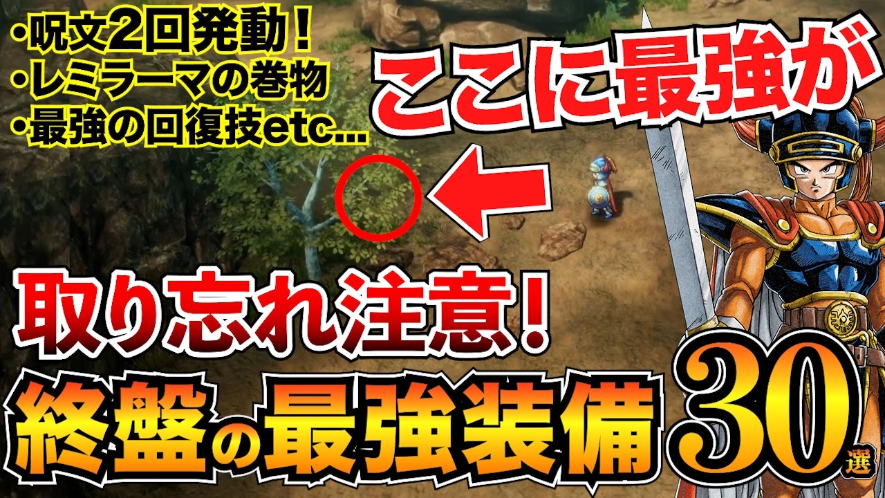 はい、どうもこんにちは。です。今回は ドラクエ1リメイク終盤最強装備まとめと いうことで魔法の鍵入手以降手に入れて おくべき最終装備と巻き物をまとめました 。こちらです。結構ね、見逃しがちな隠さ れたものもあるので概要欄の目次を活用し て好きなところから見ていってください。 で、その前にね、ちょっと皆さんにお尋ね したいんですが、ドラクエ2リメイクの 進捗ってどれくらいですかね?1終わり そうとか2始めたとか。ま、ちょっとね、 そろそろリメイクの攻略も出していこうか なと思っていて、皆さんがね、今どの辺 進めているのか是非コメントで教えて ください。動画作りの参考にしたいのでお 力添えいただけると嬉しいです。はい、で はお待たせしました。本編はね、魔法の鍵 で手に入る装備。草ぎの剣。草げの剣は 攻撃力70で道具として使用すると敵1 グループの守備力を下げられるという効果 もあります。ルカなんですね。ま、ボス戦 ではね、ちょっと使うタイミング難しいん ですけども、ま、最大ダメージをね、出し たいとかいう時にはね、使える装備ですし 、この時点ではね、攻撃力かなり高い最強 装備になりますので、是非手に入れておき ましょう。入手場所はマイラ。こちらで 魔法の鍵で開く宝箱があります。続いて ダイヤの鎧い。これもこの時点ではかなり 守備力が高い。で、しかも炎の攻撃を防ぐ という効果もあります。本作はね、結構炎 ブレス系の攻撃がボスとかは多いので、炎 装備してるだけで結構ね、それを軽減でき て楽に戦えます。炎系の攻撃をしてくる敵 に対しては是非ね、このガイアの鎧い使っ てみてください。難易度グっと下がります 。入手場所はドアフの洞窟。地下3階の 宝箱で手に入ります。続いてファントム マスク。え、こちらもね、この時点では頭 防具最強ですね。守備力が高くて、しかも 敵の攻撃をかわしやすくなるっていう効果 もあります。ファントムマスクと特技の 見かわし客でさらに見かわしやすくなる 忍びの服とかも一緒に使うともう回避率 めちゃくちゃ上がるので物理系の攻撃は かなり高確率で避けられます。ま、このね 、回避系の先法も本作非常に強いので是非 物理主体の敵に対してやってみてください 。ファントムマスクはメダル王の白の宝箱 から手に入ります。続いて不思議な帽子。 こちら守備力は低いんですけども呪文や 特技の消費MPを減らすという特殊効果が あります。20%ぐらい減りますね。ま、 ただ頭はね、さっきのファントムマスクが かなり強力ですし、鎧い防具の不思議な ボレロに関しては50%消費MPが半分に なるっていう効果があるので、ま、正直 こっちで十分かなという感じはあります。 ま、ボレロとね、不思議な帽子重複はする んですけども、ま、ちょっとね、軽減効果 が少ないのでやや有要性は低いかなという 感じ。ま、でもね、強い魔法とか特技でも バンバン敵を倒していきたい。ま、雑魚線 とかで大体1発で倒せるみたいな時は、え 、こちらの不思議な帽子使ってみて ください。入手場所は沼ちの洞窟地下2階 の宝箱で手に入ります。続いて風人の盾。 守備力52で爆発の呪文攻撃を軽減する 効果があります。ま、この時点だと ドラゴンシールドとかね、あの小さな メダル15枚で手に入っているので、ま、 これね、使っている方多いと思いますが、 守備力は、ま、若干こっちの方が上ので、 炎とか吹雪のブレス系の技がない場合は 一応ね、風人の盾の方が強いという感じに なります。入手場所は妖精の隠れとこちら の宝箱で手に入れてください。はい、と いうことでね、魔法の鍵入手以降手に入る 最強装備でした。ではね、続いて魔法の鍵 入手から、え、最後の鍵を入手するまでの おすすめ装備紹介していきます。まず1つ 目はドラゴンキラー。これは、ま、いつで も手に入るんですが、ちょっとね、値段が 高いので、ま、中盤以降になるかなという 感じで、これね、攻撃力も非常に高いです し、ドラゴン系の敵に対しての特攻があり ます。結構ね、今作ドラゴン系の敵雑魚で もボスでも多いので、ま、困ったら とりあえずドラゴンキラー持っておけば 安心かなという感じ。ま、全然ね、クリア まで使っていけるような強力な装備になり ますので、是非手に入れておきましょう。 入手場所はメダル王の白。ここにいる商人 から購入できます。ま、ちょっとね、高い ので、え、ゴールドマンとか倒して金索し て手に入れましょう。ま、お金さえあれば 中盤じゃなくても序盤から購入可能です。 あとね、ドラゴンメイル。これも めちゃくちゃおすすめ。守備力かなり高い ですし、さらに炎系の呪文攻撃とブレスを 軽減できます。ボスでもね、炎系の攻撃は 多いので、とりあえずこれ装備しておけば かなりストーリー楽になるかなと思います 。かなり終盤まで。てか、ま、クリアまで 使っても全然問題ない最強装備です。 こちらもメダル王の白の商人から購入でき ます。ま、結構高め