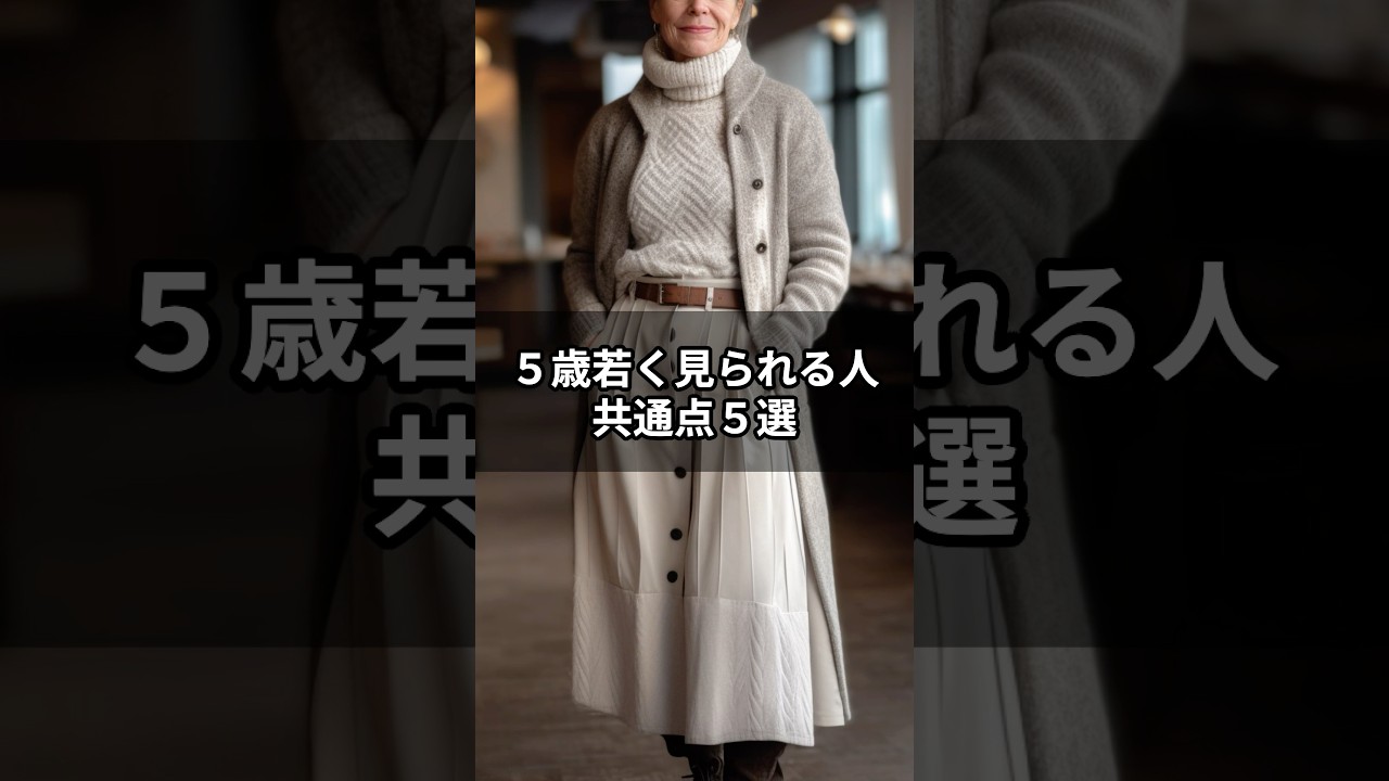 5歳若く見られる人共通点5000線1 明るめベーシックカラーで清潔感や ベージュグレーを取り入れると顔りが 明るく若々かしく2抜け感のある着こなし それ口や足首に少し余白を作ると軽やかに 見えます。3艶や素材で上品差をニットは ウールや霞宮などの艶感を意識4流行より 自分軸無理せず自分に合うトレンドを選ぶ のが若えの鍵5姿勢と笑顔もおしれの一部 背筋を伸ばし微笑むだけで印象がぐっと 明るく冬こそ軽やかに自分らしくおしゃれ を楽しんでチャンネル登録よろしくお願い します。
