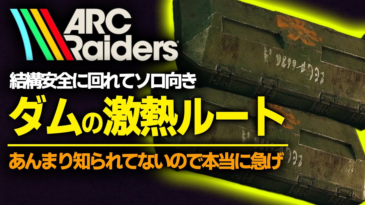 はい、お疲れ様です。けまです。今回なん ですけどもダムのいいアさりルート紹介し ていきたいと思います。ま、結構設計図も 拾えるプラス割と、ま、他に比べて安全だ し、え、個人的に、え、多分僕以外あんま やってないんじゃないかなって思える ルートなんで、ちょっと紹介するかどうか これもまた悩んだんですけども、まあまあ まあまあいいでしょうというところでです ね。はい。ちょっと紹介していきたいなと いう風に思います。というわけで今回も やっていくんですが、え、宣伝させて ください。え、このチャンネルね、え、 ゲーム関連の動画バシバシ動画投稿して おりまして、えっとですね、こんな感じで 今だとアークレイダーズの攻略動画出して いますけども、普段はね、インディズ系の ゲーム、こんなの面白いよとか、え、 ゲームのレビューとか色々やっています。 最後にでもいいんで、よかったら チャンネル登録と高評価よろしくお願いし ます。という感じでマッチメイキングが 多分終わりそうな感じがするんで、え、 行ってみましょう。 はい。というわけで早速なんですが、まず は、えっと、ま、時間を見ましょう。 とりあえずね。で、割と新品のレイドに 入ることができたので、ま、こっから先は ちょっと突っ走しっていくような流れに なりますかね。え、武器を収めて、で、 まあ、今のね、この自分がどこにいる かっていうところを把握するんだけど、え 、まずはね、この水ドームの横まで 突っ走しっていきます。はい。で、持ち物 なんだけど、別に武器とかそこら辺は何で もいいんだけど、ま、アドレナリン駐射が あると、え、ま、安定して早くいけるん じゃないかなと思いますね。はい。で、 えっと、そのドーム、水ゲート、水行 ドームの、え、横まで走るんだけど、その 過程に数箇所ね、ま、あんまりこう知られ ていないというか、意外と漁られていない 、え、武器ボックスがあるんですよ。で、 そこをメインに、え、ちょっと立ち回って いくような感じになりますかねえ。まず ここ坂をガチで上がっていきます。はい。 で、下がる と下がるとじゃねえか、これ上がった先に なんかさ、今目の前に坂道見えます?壊れ てる橋の坂道あるじゃないですか。で、 ここの裏なんすよ。あ、この裏ね、あの、 マジで開けられてない。本当に開けられて ない。ま、ちょっとあるかどうかは運なん だけど本当にね ないかな。あ、ちょ今回ないっすね。ま、 武キクレートに関しては毎回ランダム ポップなので、ま、100%っていうわけ にはいかないのがちょっとあれなんだけど 。あとねここもね、意外と開けられてない 。あ、あった。ここもね、ま、人が通る割 には知らない人が多いんだろうな。うん。 全然開けられてなくて、ま、設計図も かなり手に入りますね。 はい。で、えっと、下っていって水行 ドームに行こうかなというところ。あっち かな。そう、結構ね、まあスピードが肝心 ですね。同じ場所にとまらないで、ま、 水行ドームをこれから行くんだけど、 あんまりこうなんだろう、武器ボックス 以外は漁らずにひたすらもう武器ボックス だけを狙ってそれを周回していくっていう 感じですね。で、やっぱアドリナリン駐車 12、2本あるとだいぶスピード感早く なるんで、ま、僕的には持っていくことを お勧めしたいなというとこなんですけども 、こっから入っていきます。水行ドームの このなんか3ブロックあるやつね。うん。 入って。で、このロッカーが右手に赤い ロッカーがあんだけど、この奥の部屋、 ここのね、ここに。あ、あるね。あるね。 いいよ。 お、うま。設計図がない。ま、全然設計図 落ちます。このね、箱もたまに設計図 落ちると思うんだよね。この青いね、 スーツケースも結構ね、個人的には暑い。 もうちょいね、全然漁るとこあるんだけど 長いしたくない。時間戦めちゃくちゃ 激戦区なんで。で、これこっち側の出口 から出た正面にもう1個武器クレートが 湧く。いや、2つ湧く。あの部屋に2つ 湧きますね、可能性としては。 いや、でもここがね、マジで激戦区なんで 、ま、アークがとりあえずうろついてたら 多分誰もいないんだろうなって思っていい と思うんだけれども、こいつね、強いよね 。 火をぶっ放してくれ。これ強いよな、普通に。あ、やれ、やりきれんかった。ま知識で言うとこ中のね、発射、放射前のタイミングがあれ、あ、ここにある。ここに、ここに本来ありますね。 ただ今回はなかった。で、こっち行った先の奥の方にあるんだけど、今回あるかわかんない。どうだろうね。ないかな。 あ、いいかな。ま、ちょっと適当にも、もうそんな漁さんない方がいいけどね。本当はちょが出ちゃう。目の前に赤地帯のところにさ、漁さられてないところあるとやっぱ欲が出て漁さっちゃうんすよね、どうしても。しかもやっぱいしいな。言ってもやっぱ美味しいんですよ。やっぱ言っちゃうわ。 さて、すいません。すい