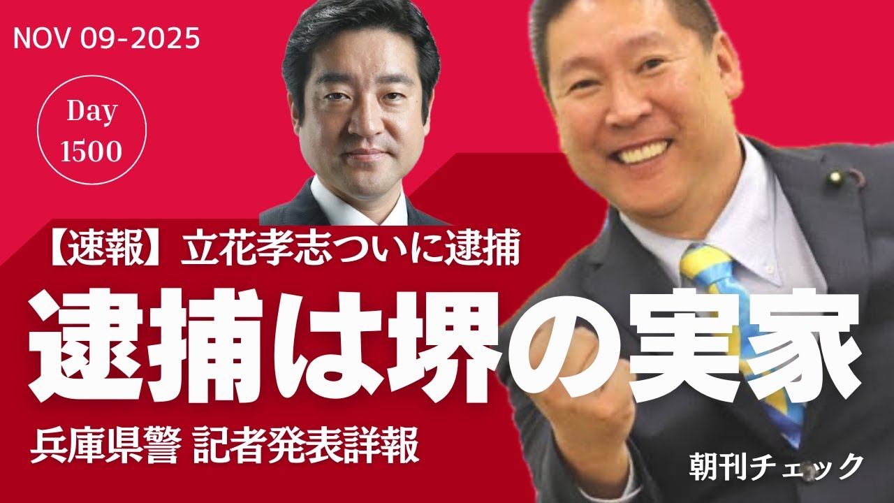 続報立花孝志逮捕11月9日曜日配信です 。 5秒前、43。 こんにちは。今時刻は午後1時5分です。 え、立花孝志逮捕の知らせから数時間が 経ちました。続報をお届けしてまいります 。この時間もNHKから国民を守る等とは 何だったのか?選挙ウッチャー地さんが 出しました本の出版社論の提供でお送りを してまいります。天の天小スタジオから 小さん小安典の典でございます。今日が 1500回目の生配信ということで先ほど お花を頂戴いたしました。ありがとう ございます。え、その当チャンネルに取り ましては記念すべき節めの1500日目の 配信の日に朝から立花孝志逮捕という幸せ が入りまして、選挙地さんはわざわざ神戸 まで、え、雨の中来られまして、え、 先ほど兵庫県前で、え、ま、お昼の ニュースで各放送局が中継をしたり放送を していたんですけれども、え、その横で、 え、県の北側の門の前のところに いらっしゃって配信をしてらっしゃいまし た。え、ド松さんも行かれて配信をされて いたというのを確認をしております。 え、福永勝也弁護士が海外にいますけれど も、お前回の配信でもご紹介したように 逮捕の知らせで、ま、あくまで逮捕である ということと今後の成行きを注目すると いう話をしていました。 え、NHKの 斎藤健一郎 だったと思いますが、福岡、え、徳島にい てというので先ほど配信をしておりました が短い配信で、え、しかもその内容の ほとんどは、え、 え、福永弁護士のツイを読んでいるだけ でした。あ、失礼しました。浜田サの方 でした。失礼しました。浜田元参議院議員 ですが、立花孝投手の逮捕についてこれ だけ任員出頭してきた被議者を逮捕する 必要があるのだろうかと。起動車が後ろに 止まっている鉄道のホームでですね、え、 配信をしておりまして、非常に聞きづらく て、え、しかも3分余りの配信の最後の 部分は機動車が出発をしてしまいまして、 そのディーゼルエンジンの音で全く何を 言ってるか分からない中で最後話しており ました。全くその部分は聞き取れません でした。え、すでに何らかの反応を示して いるいわゆるN心、え、にありコールS心 もあるようですが、ま、未だに戸惑って いるというか、え、これまで立花様々でい たような人が通常運転の発信をしていると いうところも数多く見かけられております 。え、それだけ戸惑っている、どうして いいか分からない。 え、沈み始めた船から、あ、降りていいものやらどうなのやらというそんなところではないでしょうか。 え、でここでですね、え、続報が入ってまいりました。今日逮捕の発表があったということ。 [音楽] その発表が朝日新聞が9時31分に、え、 確か速報を出していまして、前日新聞が9 時34分。ただ、まあ、独自に掴んでと いうことではなくて、警察からこういう 発表があるということで、え、警察の発表 を待って、え、各配信したということでは ないかと、え、思われますけれども、え、 その 発表時のやり取りというのが伝わって まいりました。え、それがこの続報でのお 伝えすべきことであります。 え、逮捕は、あ、おそらく堺の実家なんだ と思います。本日午前3時42分未のこと でありました。え、名誉既村の被疑者とし て逮捕したと。逮捕場所は堺市堺楠の木町 、楠の木町でしょうかの駐車場ないという ことでございました。ま、これまでも泉、 泉乙通の市長選挙とかいろんな時にNHK 党の宣伝が堺市内で目撃されていまして、 え、それが確か駐車場でですね、え、目撃 されていた写真を見たことがあります。え 、立花孝志の実家のに戻るところだったの ではないかと思われます。昨日の夜は、あ 、大阪南のバーで、え、60分 1万1000円 の両台というお店でバイトをしていたと いうことでありますので、そこから、ま、 立花は飲んでいるはずなんで、え、誰かが 運転をしていって、え、実家まで送り届け たところを逮捕されたということだと思い ます。 で、え、竹内秀明 元県議への名誉既存ということで、お昼の ニュースでもやっておりましたが、あ、 去年まだ、あ、た夫さんがご存命の時の 名誉を既存と、それから亡くなった後、 もうすでに動画は削除されてはいますが、 え、明日逮捕される予定だったというよう なことを後に兵庫県本部長が自ら否定を するという慰例の事態を招いたんです けれども、え、亡くなった後のことも報じ られておりましたので、え、ですから生前 の誹謗中傷名誉既存と死護の名誉既存、ま 、これはまた要件が変わってきますけれど も、え、共に逮捕容疑ということになって いるのではないかという風に思われます。 え、で、 お昼のニュースでもありましたように捜査 に主張があるため、え、容疑者の妊費、え 、その容疑を認めているかどうかについて の回答は差し控えるというの発表であり ました。ただ、あ、冒頭午前3時42分、 今日午前3時42分、名誉既の被議者とし て逮捕した立花孝志容疑者。逮捕場所は堺 市堺区楠の