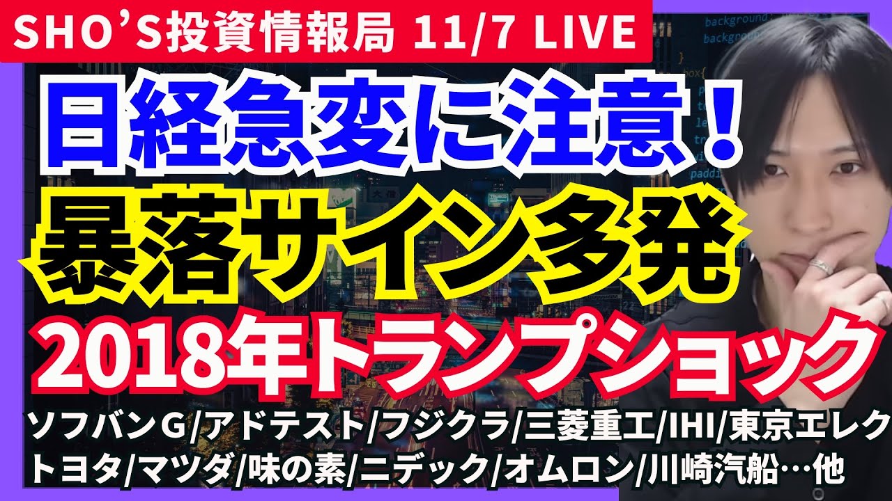 今日のタイトルボラグて書いてますけど、 気足が25日戦割ってるから直近の チャートパターンと壊れてるんですよ。 あとはもう決算したいなんだけどさ、決算 も後がってんだもんね。やめてくれよ。 あのなんか2018年みたいな下げ方瞬間 上がってからどんどんどんどん下がって そこは天井であのマーケット崩せるとか こんな気もいらないっすよ。本当にやばい ね。ストップ中ストップやが大型に バンバンバンバン出てきてる。の分からん 相場ですわ。今味のことがストップス 3623ですわ。10時30分ですね。 ライブ配信やってきましょう。で、日本株 1の銘柄が急楽してきてるという流れの中 でソフトバンクグループとか アドバンテストであったり、藤倉であっ たりとかね、ちょっとその大きく下がっ てるような形じゃないですか。ただ他の 銘柄そこまで悪くなかったし、俺もそう 今日は資産減ったけどもうかすり傷程度 あったので実際そこまで下げてるかって いう状況ではあったんだよね。ま、 とりあえずあの週末なしだし雑談交え ながらあと俺ちょっと風気味なんで しんどいんですけどあのライブ配信やって いきたいと思います。皆さんよろしくお 願い。お疲れさんです。下がったね。え、 日経までの築地でしょ?あのデータでしょ ?てるけどどうなるかではね、受給 ボーナスが終了してくるかどうかでえっと ねボリバンの中央戦25日ラインで今下 先止まってるような形じゃないですか平均 が。ま、ちなみに明日12時に動画を公開 するので皆さんそのつもりでおって くださいね。これ止まるかどうかだよね。 ま、でもね、そこまでね、今日悪くなかっ たよね。2下げたところから下引け伸ばし て戻してきたんで。で、俺もあの下がって るって言っても、あの、実際あの50万 ぐらいしかマイナスじゃないです。減て ない。たったした金額じゃない。ええやと 思ってから放置してますけど、本当にね、 あの、どうなんだろうね。今からね、NS 倍率はね、こんな感じなんで、まだ下がっ てる感じじゃないんだ。へえ。で、ドル 建ての日経平均はこんな感じでしょ。RI の下ラインは買ってきててありがとう ございます。お任します。ありがとう ございます。皆さん今日はそういった感じ しときあの海外勢ね売ってくるかどうかだ よね。来週出てくるデータでこのライン 割ってるからさ、急にこう一致してるじゃ ないですか。ボトムの場所を一旦割って から反転下げたポイント。あ、ドル円 153円台ね。ちなみにまだ下がってくる ような動き方してないよな。ま、円安に なるのはもう目に見えてたんで分かり やすかったすけど。断的なゴールデン クロス形成後パンパンパンって上がってで ソフトバンク9984ソフトバンク グループここあたりが暴落してんだよね。 今あれ今日のタイトル暴落って書いてます けどあここあたりであの皆さんの暴落って ところのあの伏線回収しときましょう。 会長ねソフトグループとかねあの高値から 暴落してる暴落急楽してるからねそうだ からソフトグループとか下がってね火曜日 でしょ足が25日戦割ってるから直近の チャートパターンぶっ壊れてるんですよ。 あとはもう決算したいなんだけどさ、 チャートパターン崩れてるよね。赤と黄色 のラインをボトムラインとして上げたり 下げたりしてたんだけども、ここ割って から下がっちゃってるんでごですね。で、 反動体ね、昨晩ね、アメリカの反動体 突っ込んでんだもんね、下にね。で、決算 後アームも、ま、激しく動いてて、え、 最終パイアスNVIAが3.65%下がっ てから時間外も下がってんだもんね。ね。 で、AMDがね、あの7%以上こうバーン 下がって煽り受けて全体的にNVDの煽り 下落の煽り受けてアドバンテストも下がっ てるわけでしょ。今日5.54あの反動 体株の中でもハイテクの中でもやっぱその さっきのソフトグループであったり アドバンテストとかはま、あのかなり行き すぎて上がってるんでね。他の反動体株と ハイテック株と比べて明らかにだって PBRベースで見ても倍ぐらい違うじゃ ないですか。他の反動体とアドバンテスト のバリエーション見るとまあね、あの違う ような変な違う動きに入りやすいよねって 感じよね。で、リスコもね、今日結構下げ てたような気するけど、今日4%ぐらいか 。ま、でもあれだよね。下落方向に万読だ よね。トネクスは強かったんな、こいつな 。でも下落方向に万読やね。だから別に その感じな気兆しが出てるわけでももう ゲーム性を目からしか持ってないもんて。 あ、俺も今日実理取ったよ。そしてから また次に備えてます。キャッシュ比率はね 、前と変わらへんからね。で、今持ってる ポションとかは、あの、余裕なるポション なので、え、でも俺そんなに今日、あの、 損出てないっすよ。皆さん、どうでした? そんなさ、いや、ソフトバンクとか アドバンテストとか、ま、あそこあたり 高いとこで掴んだ、捕まっちゃった 藤く倉く、藤倉も下がってたな、今日な。 え、決