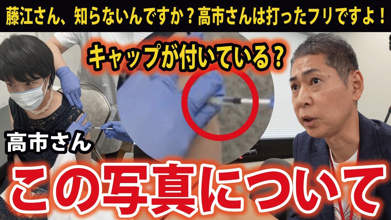 あと、え、これにもね、触れておきたいと 思うんですけど、先ほどコメントでね、 もういただきました。高石さんね、打った フリーでしょうとね。本当は打ってない でしょって。これ僕は分からないですよ。 もちろんね、分からないけれども、その 打ってないという風にね、言われる根拠が こちらですよね。さんがXで投稿していた ね、え、Twitterで投稿していた ものですけれども、この1回目のね、異物 購入ロット乗り越えて2回目を受けて来た 時のね、写真ですけれども、はい、こう いった写真がありますと、これが、え、 キャップついてんじゃないですかみたいな ね、話が出てるんですよね。うん。だから 打ったフリーじゃないですかってね。 キャップついたまま打ってるように見え ますよという、そういう、ま、あの、ま、 疑惑がね、打ったじゃないですかと疑惑が あるんだけど、この後ですね。はい。 しばらくしてからね、高石さん、この写真 をね、出されてね、打った振り疑惑がある ようだけど、ちゃんと打ってますよって ことで、ちょっと写真ね、違うパターンの も公開されていました。はい。こちらだと 、ま、針がね、え、ま、肌にねうん。ま、 入ってるってうかね。落ち込んでるように 見えるものがあると。あ、キャップ疑惑は 他の写真で否定されたっていうね、そう いったコメントも今いただきましたけれど も、ま、僕も断定的には申し訳ないですよ 。でもね、これは打ってるじゃないかなと いう風に私は思うということをちょっとね 、お話しするとね、これさっきのキャップ 付きじゃないですかというもののこれ拡大 したものです。え、1枚目に出したやつ ですね。で、この後高一さんはちゃんと 打ってますよっていう風に写真ね、添付し て出したのがこちら2枚ね、高一さん自身 が公開されているんですけど、皆さんどう 思いますか?これね、これ 1枚目に出した時、これね、キャップつい てるように、ま、見えるというのも分かる 。そう思うのも分かるね、これですね。 はい。僕もね、あのね、別に駐車全然ね、 詳しいわけじゃないから。もう1つは、ま 、針があって、ちょっとね、くぼんでます よね。肌のところがね、皮膚がね。だから 、ま、ね、もう入ってるように見えると いうのがあると。はい。あ、拡大してみ たらキャップしてましたっていう風にね。 はい。あ、針が引っ込む駐車機があります よということですけどね。ま、中身までは 分かりませんけどねっていうことですけど ね。僕がね、ちょっとね、この2枚からね 、こうなんじゃないかなというのをね、お 伝えするとこれがね、ま、順番で言うと これは2枚目の写真と申し上げましたけど ね、これが時間的には先なんじゃないかな と思うんですね。うん。まずこういう、ま 、写真パシャリと撮るわけですね。はい。 で、え、次の写真公開自体は先だったけど 、これがね、後 じゃないかなって思いました。これをね、 この状態1枚目自系列的には先ね。で、 これを駐車打つ時ってあれでしょ?針を 刺すという工程と中の液体とかを注入 するっていうそのピストンするみたいなね 、その2つの工程があるって考えられます かね。で、今これ針を挿したという工程1 つ目の工程でね、次にあの、ま、注入する というね、工程がこちらかなと思ってます ね。 指違いますね。このね、打ってる方のね、 これ今針入れてますと。で、針がもう入っ てね、おそらくこの、ま、透明に見える筒 のものがね、外側にあって中にワクチンを ね、ワクチンと呼ばれるものをね、 押し込むためのね、中の延中上のものをね 、こう押してるということかと思います。 伝えられてますかね?これ1枚目でこの黒 とこのこれ白シルバー白っぽく見えるやつ がぐグってこうさ、こっち進んでくるん ですよ。 で、え、こうなったと。だから針は入って いてで中の黒と白のね、押し込むための やつが高一さの方にね、皮膚の方に近づい てるということかなって私はね、解釈し ましたけどね。まだ他のね、見解だったら 教えて欲しいんですけれども。なのでね、 私は、ま、これを持ってね、打ってないと いう風にはね、あの、個人的にはね、思わ ないなというのが今のとこの見解なんです けど、駐車機とか別に詳しくないしね。 また違う見解とかあったらね、え、こう いった駐車機使ったことある人 いらっしゃったらね、教えて欲しいなと 思いますから。はい。ま、中身は分かり ませんね。中身は私は分からない。はい。
