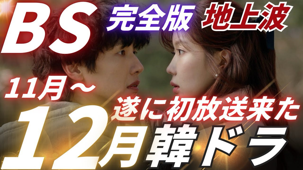 あの話題作がついに早速11月から12月 のBS&地上派情報をサクっとご紹介し ます。秘密の女信号運共演で送る韓国で同 時間帯視聴率1位を獲得した話題策の愛人 により視力を失った女性の壮絶な復讐愛劇 11月14日よりBSニテレで毎週月曜 から金曜午後15時より放送スタートへ大 の道蝶いる小原共演で送る東位の息子で あり遺産の祖父である若き王の壮大な歴史 ロマンス長対策11月281日よりBS ニッテレでレ月曜から金曜午後17時より 2話連続放送スタートスキャンダルハン ボルムハンチチェオ音共演で送る自分の 父親を死に追い合った女性と再び再開した ヒロインが自身の全てをかけ復讐する究極 の復讐エンターテインメント策11月17 日よりDS富士で毎週月曜から金曜午前 10時より放送スタート3度イオ分監督が 送る朝鮮王朝時代の証人3億の障害を描く 歴史ロマンス招待策レオン主演で送る。 11月5日よりPSで毎週火曜から金曜 午前9時より放送スタート花より団子移民 クヘゾン共演で送る日本の大人気ドラマを リメイクした時めきラブストーリー11月 10日よりBS10で毎週月曜から金曜 午後17時より放送スタート時速 493kmの恋セジョン白樹白ヒョ共演で 送るバトミントンの天才少女と練習の男性 が手を組み金剛ダブルスで高みを目指す 青春ラブストーリー11月25日よりPS 10で毎週月曜から金曜午後14時より 放送スタートディズニープラススターで 絶賛配信中です。 ウィンドウ有な祖民共演で送る専業主婦で家族を支える女性がある日夫の不倫により全てが崩壊し始まる 2人の女が繰り広げるエンターテインメント対策 11月13日よりBS イレブンで毎週目曜金曜の午前 10時より放送 スタートよく奢っくるなん人ヘ員共演 で送る韓国で当時ームを巻き起こした 究極の純ラブストーリー11月2日より JコムPSで毎週日曜午前9時30分より 4話連続放送スタートチョルインワンフ新 ヘソンキムジョンヒョン共演で送る日料理 人の男性が朝鮮時代にタイムスリップ そしてなんと公引直前の王妃の姿に 入り込んでしまいそこから波乱の物語が幕 を開ける爆笑必須の歴史ロマンス調対策作 11月20日より税コムBSで毎週月曜 から金曜午前11 放送スタート美女と男イ共演で送るトップ女優から落ちれてしまったヒロインとそんな彼女を支える初恋相手の新人監督の男性 2 人が最強かけ奮闘するハ乱万上の胸キラブストーリー 11月25 日地上東京系列で毎週月曜から金曜午前 8時15分より初放送スタートラストは 12月の最新BS 副売り運ジ共演 で送る愛する人の妹を殺害した罪を なりつけられたヒロインが全てを取り戻す ため奮闘する愛する人の裏切りを乗り越え 極に立ち向かう復讐エンターテイメント超 12月5日よりPSイレで毎週月曜で金曜 午後14時29分より放送スタート。今後 も最新情報が入り次第最度特集します。 是非チャンネル登録してお待ちください。 [音楽] [音楽]