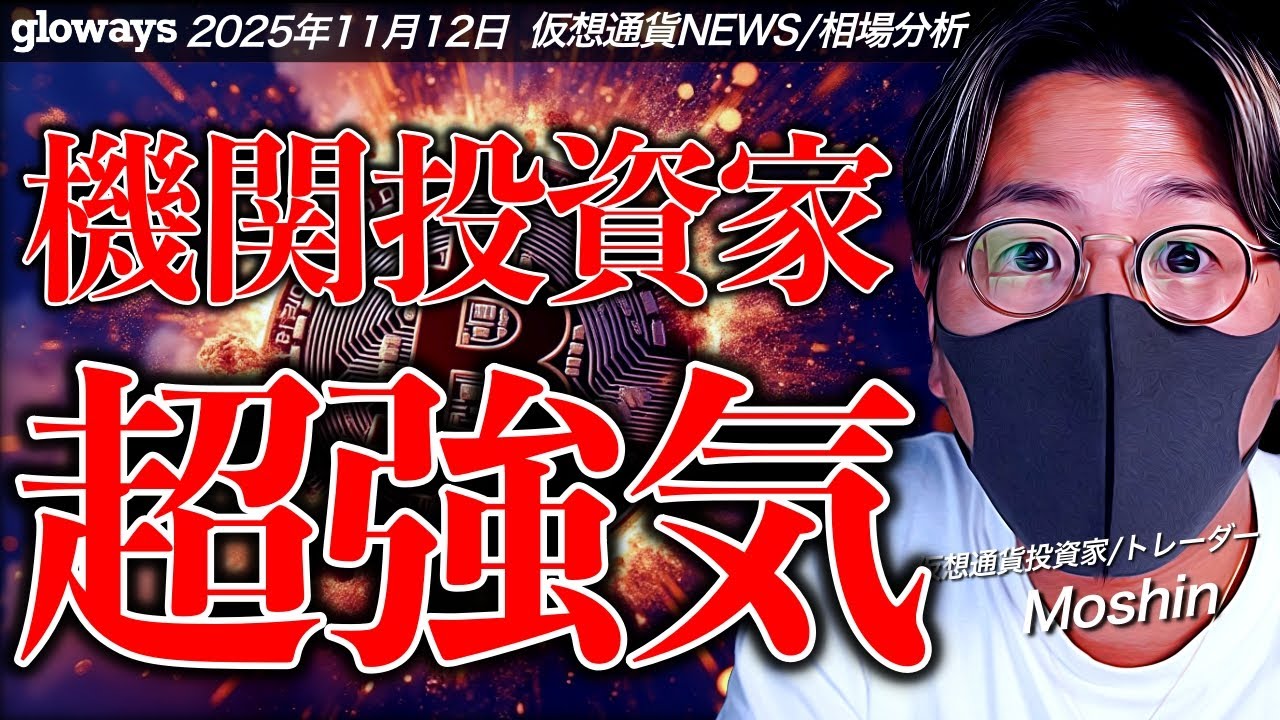 はい、どうも皆さんこんにちは。もしです 。え、日本に帰ってきました。今日から またこのスタジオでいつも通り配信を続け ていきたいと思います。え、今日の仮想 通過資料ですがビットコインは現在 10万3140ドル 、え、昨日1時10万8000ドル付近に 迫る勢いで上がっていたんですが、大きく 反落されてしまいました。この要因一体何 なのか。そしてこの後ビットコインは続落 していくのか。ま、ここ最近仮想市場全体 的にね、盛り上がらない状況ではあるん ですが、一方でなんと6割の機間投資化は ここから買い増ししていくと、しかもこう いったところに買を入れていこうと考えて いるみたいなレポートが出ているんですよ ね。このレポートの内容が非常に興味深い です。短期同行、中期同行含め今日も皆 さんと一緒に楽しく見ていきたいと思い ます。 僕がトレードでメインで使っているのは バンテージトレーディング。今新規登録 1万5000円そして初回入金120% ボーナスのキャンペーンをやっています。 で、こういったボーナスと聞くとどうせ スプレッドが広いんでしょうという風に 思うと思うんですが、こちらの表の通り 海外の主要取引上ブローカーよりも圧倒的 にスプレッドが小さい。これがバンテージ トレーディングの強みです。特に最近強い ゴールドやビットコイン、そしてドル円 なんかはスプレッド最小の環境でトレード することができると。まずは概要欄から こういったボーナスを是非ゲットして トレードにもチャレンジしてみて いただければと思います。はい、今日の 加像通過資料ですがビットコインが 1598万1.9% ダウンしました。Eさに関しては 53万2000円ということで3.2%の 下落。え、今日はアルトコイン市場全面的 に下落しておりまして、特にソラ7ナは 6%の下落ということでかなり落ち込んだ 1日となりました。特にソラナに関しては 重要なラインまで落ちてきてるんですよね 。どういう風に攻めていけばいいかという ところも今日はしっかり触れていきたいと 思います。え、株式市場の同行も見ておき ましょう。こちらグローウェズの朝分析 引用していきたいと思います。え、昨日の アメリカの株式市場はダウはね1.1% 上がったんですがNASダックは半落。ま 、待ちまちの状況になりました。ま、ただ 埼は推移しているということで、やはり アメリカ市場最長となったこの政府閉鎖が 間もなく集結する、え、この期待感が 高まっているということで底が動きになっ ているということが言われています。え、 それから昨日ADPが発表した修時の民間 雇用者数は10月後半の労働市場が前半に 比べて減速したということが、ま、示唆さ れたらしいんですよね。今政府が発表する 経済統計っていうのは出ていませんので、 こういった民間が出す、ま、指標を見ない といけない状況になっていると。ま、その 民間が出す指標から行くとやっぱり声弱く なってきてるよねっていうところは見えて いるようですね。はい。その政府閉鎖なん ですが閉鎖を終わらせるためのつなぎ予算 案。これ上員では可決されました。次会員 に進んで会員でも可決されたらトランプ 大統領に歩されて署名を得るっていう風な 流れらしいんですよね。会員の投票に関し てはじゃいつなのか、え、日本時間13日 の午前6時に行われる可能性があるという ことが言われていまして、明日の朝の6時 ですね。その辺りでもしかしたら大きな 動きになる可能性があるっていうところは 注目しておかないといけないかなという風 に思っています。でもしこのまんま政府 閉鎖の解消がですね、トランプ大統領まで 行って署名された場合は今まで溜まって いる例えば9月の雇用統計とかもね、まだ 発表されていないわけで、その辺りが どんどんね、公表されていく、発表されて いくっていう風な流れになるんじゃないか ということが言われています。ま、そう なるとまたそこでですね、大きな値動きに なる可能性もあるんじゃないかなと思うん ですが、まだまだですね、不確実な相場は 続きそうだなという風に思っています。 ただ前提としてやっぱり労働市場は弱く なってきているということは間違いなくて 、で、インフレに関しても、ま、そこまで ね、ガンガン伸びているっていう風な データは今のところ、ま、前回のCPI からですね、何も発表されていないわけ ですが、そこまでのデータだとを確認され ていないということになると、え、次の FOMC、ま、12月が予定されている わけですが、ここでも利下げを採択して くる可能性っていうのはまた高まって、え 、期待によって上がっていくっていう風な 存になる可能性は今後十分に考えられるん じゃないかなという風に思っています。 今週中に政府閉鎖が解消正式にね、できれ ば来週からはですね、結構強い相場になっ てくる可能性もあるんじゃないかなという 風に思っています。ま、今ビットコインに 関しては11月に入ってから6%下落して います。なので10月の下落幅