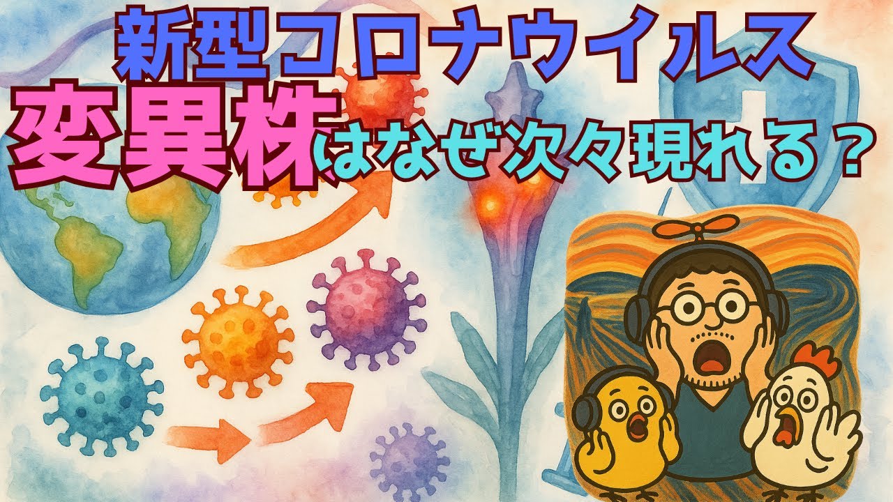 パンデミックから数年が経ちましたけど、 私たちの生活をガらりと変えた新型コロナ ウイルス。実は今、この瞬間もすぐそばで どんどん姿を買い続けてるんですよね。 そこで今日はこのウイルスと僕たちの免疫 が繰り広げているまさに終わりなき軍競争 、その裏側に迫ってみたいと思います。 この巧妙な戦略を一緒に解き明かしていき ましょう。さて、これきっと多くの方が 1度は思ったことありますよね。ワクチン も打ったし、前にもかかったのに、なんで また新しいのが出てくるんだって。その 答えはですね、ウイルスが生き残りをかけ て仕掛けてくる本当に驚くべき進化の ドラマの中に隠されてるんです。この スライドがまさに今日の話の肝になります 。ウイルスの進化っていうのは言うならば 軍格競争なんですね。ウイルスはもっと たくさんの人に移るための攻撃力、つまり 感染力を上げようとする。それに対して僕 たちの免疫は防御力でそれを食い止めよう とします。すると今度はウイルスはその 防御をすり抜けるためのステルス機能、 つまり免疫から隠れる能力を身につけよう とする。この攻撃と防御のい立ちごっこが 次から次へと新しい変異株を生み出す エンジンになってるわけです。ではまず話 の始まりパンデミックの初期にちょっと 時間を巻き戻してみましょう。この頃って 僕たち人類のほとんどはこのウイルスに 対する免疫を全く持っていませんでした。 だからウイルスの進化の仕方もすごく シンプルだったんです。とにかく攻撃力、 つまり人から人へいかに早く伝わるかその 能力アップだけに集中してたんですね。 このタイムライン見てみてください。 ウイルスの進化がいかにスピーディだった か一目瞭然ですよね。2020年のD 614Gから始まってアルファ株、そして あの強力なデルタへ。まるでリレの選手が どんどん入れ替わるように世界中の流行の 主役が交代していきました。じゃあなんで こんなことが起きたのか。それは新しい株 が前の株よりも生き残って広がる上で何か 有利な点を持っていたからなんです。これ を選択的優意性って言います。ここで特に 強かったアルファ株とデルタ株を比べてみ ましょうか。アルファカブっていうのは ウイルスの表面にあるトゲの形をちょっと だけ変えて人間の細胞にカチってはまり やすくしたんですね。それで感染力を上げ た。でも次に出てきたデルタブはもっと すごかった。細胞に入るだけじゃなくて 感染した細胞が隣の細胞と合体するのを 手伝って体の中で一気に勢力を広げる力を 手に入れたんです。で、ここが重要なん ですけど、このデルタカブあたりから僕 たちの免疫からちょっとだけ姿を隠す能力 、その兆候が見え始めた。ここから競争の ルールが少しずつ変わり始めたんですよ。 そして2021年の後半、この進化の競争 のルールを根っこからひっくり返すような まさにゲームチェンジャーが現れます。 それがオミクロン株です。南アフリカとか ボで最初に見つかったこの新しいウイルス は遺伝子を調べた科学者たちを本当に驚か せました。なぜかって言うとその姿がそれ までのどの変異ともあまりにもあまりにも 違っていたからです。この数字30以上。 これが何を意味するか分かりますか?これ はオミクロン株が僕たちの細胞に入るため の鍵の部分に起こした変化の数なんです。 これまでの変異株が鍵の形をヤスりで ちょっと削るくらいのマイナーチェンジ だったとしたら、オミクロンは全く別のご をいきなり30個以上も作ってきたような ものなんです。これはもうとんでもない 進化のジャンプでした。この大量の変異が 何をもたらしたかと言うと劇的でした。 オミクロン株は僕たちの免疫システムが 過去のデータを元に作った交代を ものすごく匠みにすり抜ける免疫回避の 達人だったんです。言うなればウイルスが 全く新しい変装をしてれたようなものだ から僕たちの免疫はあれ誰だっけって 見分けるのに苦労して結果的に感染を防ぐ ためのワクチン効果が下がってしまった わけです。さてここまでウイルスの話をし てきましたけど今度はちょっと視点を変え て僕たちの体の中つまり免疫システムに目 を向けてみましょう。この新しい脅威に 対して僕たちの体はどうしたんでしょうか ?キーワードは免疫が持ってる記憶の力。 でもこの記憶実は必ずしも僕たちの味方と は限らないんです。ここで皆さんに1つ 問いかけてみたいんです。前にかかったり 、ワクチンを打ったりして手に入れた免疫 の記憶って進化し続けるウイルスと戦う上 でいつも助けになると思いますか?それと も時によっては逆に足かせになってしまう こともあるんでしょうか?実はこれ科学の 世界でもすごく議論されているポイントな んです。その鍵を握るのがこの免疫イン プリンティングっていう考え方です。言 現在なんていうちょっと難しい別名もあり ますけど、例えるなら初恋いの人のおかげ を新しい恋人にどうしても重ねて