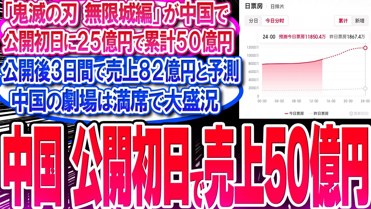 鬼滅映画が中国で公開初日に売上50億円!! 公開3日間で82億円と予測!!【反応集】【無限城編】【無限列車】【興行収入】【竈門炭治郎】【猗窩座】【煉獄】【胡蝶しのぶ】【童磨】【冨岡義勇】【総集編】