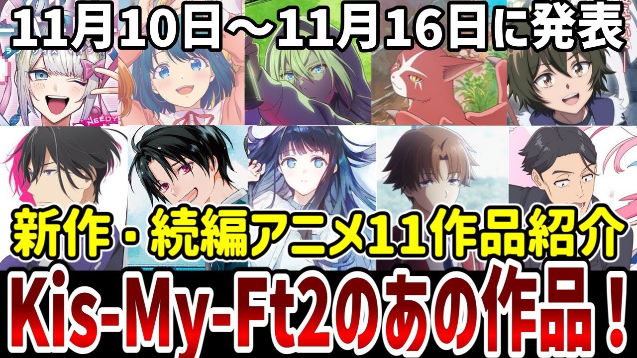 ひなチャンネル。 今日は新作続編タイトルの紹介動画ね。 今回は11月10日から11月16 日までに発表された作品なんですが、これまた一気に増し [音楽] 11作品の紹介を行ってまいります。 年末戦の始まりだ。 発表されたのは来年の作品ばっかだけどね。お約束のなろ系からゲームのアニメかまであるので早速ですがどんどん紹介していきます。 ほな司会進行よろしく。 まず最初の作品はテレビアニメニディガールあるオーバードが 2026年4月より放送決定。 私の歌を聞けとは違うと 私を見ろと書かれています。 シェリルにしては見た目が幼ないもんね。 まずはこのコンテンツ 2022 年わシリアスよりストリーム配信にて発売されたマルチ破滅エンディングアドベンチャーゲーム。そんな育成シミュレーションゲームです。 [音楽] マルチ破滅エンディングというワードはすごく気になる。 2025年1月時点の売上本数は約 200万本。17 歳以上のレーティングがついてますね。 黒い感じなんかな、エロい感じなんかな。 [音楽] うちもその辺りは分からんのでプレイヤーが教えてもらいたいですね。なお 20 種類以上のエンディングが存在するようです。 どんなゲームなん? 簡単に説明するとプレイヤーは動画配信者の超絶は天使ちゃんこと頂点ちゃんにふするアちゃんと同棲するパートナーとして 30日間で100 万人のフォロワー獲得を目指すゲームらしい。 なんか普通のギャルゲー。 ゲーム内でSNS や裏アカとか出てくるらしいけど、好感度などもあるようだからギャルゲーの分類になるんかもね。一応ゲームジャンルは配信者育成アドベンチャーになってる。 [音楽] 配信者を育成するんだ。 あとは2022 年に公式アンソロジーコミックも発売されてんね。アニメ作会社はスターピクチャーズ。直近ならアークナイツや仙体大失格を制作しているので作画のレベルは期待できそうです。都会では先行上映るようなので気になる人は見てみるのもいいですね。 我々田舎者は移動するだけで 10 回以上を見るぐらいの費用が発生します。 せめて福岡あたりで上映して欲しいわ。 では次の作品はテレビアニメ幼馴染みとはラブコメにならないが 2026年1月より放送決定 ハーレムアニメでファイナルアンサー ざっくりあすを読んだらそんな感じですなともかくこちらは 2022 年よりマガジンポケットに手連載開始コミックスは 13巻まで発管されており累計発行部数は 150万部を突破しています。 大体予測ついちゃうけどあすをよろしく。 主人公の男子高校生は複数の魅力的な 幼馴染みヒロインたちが存在し、一緒に峠 をしたりキスをしたりといった。普通の ラブコメなら恋愛イベントになりそうな 出来事が日常的に起こる。幼馴染みの2人 はいずれも主人公に行為を寄せておりジも どかしい三角関係が繰り広げられます。 最近このパターンをよく見かけるけど 流行ってんのかな?ここ数年のマガジンに 連載されてる鉄板ラブコメ設定がこんな 印象よね。 アニメ制作会社は手塚プロダクション。食品なら女神のカフェテラスを制作しています。 手塚さんもこっち系の作品が増えちゃったわけですね。 メインキャストは浦たひさん、くみりんさんどが発表。ハーレム系ラブコメが好きな人には刺さる作品ではないでしょうか。では続いての作品はテレビアニメ左利きのエレンが 2026年4月より放送決定。 この子が左利き機というのだけ分かるタイトル。 この作品は結構すごいよ。 頬ほう。 どんなものなんか聞いてあげようじゃないか。 2016年3月24日から2022年8月 31 日まで聞いず以降はノートで連載中。第 1部左利きのエレン、第 2部左利きのエレン、第 3 部左利きのエレンドプと物語が続いている。第 2 部の連載中に外伝左利きのエレンシックの連載も開始。 第1部についてはリメイク版が少年 ジャンププラスで2017年10月7日 から2022年10月8日まで連載され 2億PVを記録。2020年には再編終盤 漫画家のクラウドファンディングが行われ 、漫画日本最高額となる総子演額5368 万円を記録。2019年に毎日放送政策で テレビドラマそして2026年にアニメか 。累計発行部数は約390万部を突破して います。 クラファンの額と発行部数がすごいのだけ勝った。 簡単なあすじです。自らの才能の限界に苦しみながらも何かになることを夢みる凡人。婚一と圧倒的な才能に苦悩するこの天才エレン。 デザイナーの道を選んだ高一は百戦連の広告業界のクリエイターと世界のアートシーンに飛び込んだエレンは怪物アーティストたちと遭遇しみの才能がうごめき締めき合うクリエイターの世界を舞台にもがき時にくじけながらも挑み続ける 2人を描く物語 広告業界の話なのね元そっち系の業界だから共感できる内容じゃないと 原作は読んだことないんだけどこの作品を調べたらめっちゃ興味出たね原作読んでみたいと思ったも アニメ制作会社はシグナル MとプロダクションIG。この2 者が協力して制作した直近の作品は新カリオンチェンジザワールドメインキャストは千葉翔さん、内山ゆさん