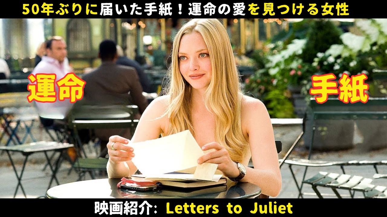 イタリアの古い伝説によるとジュリエット の銅像に触れるだけで愛する人と生涯を共 にできるそうです。そのため毎日世界中 から耐えず人々が訪れ、愛する人の心が 自分だけに向くようにと願います。中には ロミオとジュリエットの映画を真似て バルコニーに登る人までいます。たえ愛情 に日々が入ってしまっても大丈夫です。 願いの壁に自分の気持ちを書きせばほど なくしてジュリエットからの返事が届き ます。ジュリエットは恋に悩む数えきれ ないほどの若者たちの問題を解決してくれ ます。最初は誰もがこの話を信じていませ んでしたが、その後の変身の手紙一通一通 がこれが根もはもない噂ではないことを 証明し、若者たちを涙させました。銅像の すぐそばにある手が身をかくための小さな 一角もこの場所の名物になっています。 しかし、ジャーナリストであるソフィーは 伝説上の個人が手紙に返事をかけるとは 当然信じることができませんでした。ある 女性が現れるまでその真層は謎のままでし た。彼女は全ての手紙をかに入れると堂々 と大きなもんから出ていきました。 ソフィーはこの件には何か裏があると確信 しました。彼女はすぐに立ち上がって後を つけました。街角門の養殖レストランで 彼女は他の数人の女性たちがとっくに待っ ているのを発見します。彼女たちは明確に 役割分担をして手紙を交換し合っています 。明らかにこれが初めての仕事ではあり ません。ソフィーは好奇心からドアを ノックして担当直入に尋ねました。しかし 相手はソフィーのことを作家だと勘違いし ました。彼女が作家だと聞くと皆非常に 興奮しました。実は彼女たちこそが皆から ジュリエットと呼ばれている人々でした。 もっと正確に言えば彼女たちは全員 ジュリエットの秘書で毎日人々の手紙に 熱心に返事を書いていました。カーリー ヘアの女性は夫と50年も連れっており、 夫婦関係の対処法を熟地しています。その ため彼女は結婚問題に関する手紙の返事を 専門としていました。夫は赤ワインのよう なもので長く熟成させてこそ味わい深く なります。看護師の女性は片思いや不器用 な恋に関する難しい問題を担当しています 。赤毛の女性には12人の子供、29人の 孫、そして16人のひ孫子がいます。男女 官の親密な問題は全て彼女が担当してい ました。ベラはリーダーで最も解決が 難しい恋愛のモつれや彼の問題を専門に 扱っています。この仕事はかなり馬鹿げて いるように聞こえますが、しかしまさに この通りを湧きまえた女性たちが中夜を 問わず若者たちの悩みを解消していたの です。最者の女性はソフィーに夕食を共に しようと心から誘いましたが、ソフィーは 断りました。これに主催者の女性は少し 機嫌を損ねましたが、ソフィーが婚約者に 会いに行かなければならないと言うと、 彼女はふと笑い出しました。帰る前に彼女 はソフィーに手作りのケーキをプレゼント しました。実はソフィーは最近婚約した ばかりで彼女の婚約者はニューヨークの 都心でレストランを経営しています。 レストランはまだ回送中で回転していませ んが、婚約者の職への情熱があれば将来 きっと成功するでしょう。ソフィーは出版 社に務めていました。2人は結婚前の機会 に旅行でここを訪れましたが、ソフィーが ここから忘れられない旅を始めることに なるとは重りもよりませんでした。翌日、 ソフィーはベラと一緒に手紙を集めに行き ました。彼女はうっかり敷石を1つ落とし てしまい、それを拾おうと身を眺めた時、 石の後ろに何かがあることに気づいたよう です。それは誇まみれで色わせて黄ばんだ ブートで手紙の日付はなんと50年前の ものでした。手紙を書いた少女の名前は クレアでした。彼女はロレンツという名の イタリア人青年を不愛していましたが両親 に反対されていました。そこで2人は 駆け落ちして遠くへ行こうと約束しました 。しかし残念なことに少女は最後に怖く なってしまい約束の木の下で青年を1人が 死げに待たせたままイギリスへ留学して しまいました。その別れ以来2人は2度 と会うことはありませんでした。この 悲しい恋映画を聞いて誰もが心を動かされ 少女の無力さが使れ出してくるようでした 。しかしその手紙は50年も封印されてい たのです。今更返事を書いても何も変わり ません。かつての少女は今では少なくとも 70歳を過ぎており、他の誰かと結婚して 子供もいる可能性が高いです。しかし ソフィーは運命に逆いたくありませんでし た。そこで真夜中に彼女はその手紙に丁長 に返事を書きました。すると驚いたことに 1週間も経たないうちに本当に1人の男性 が訪ねてきました。彼はクレアの孫である チャーリーでした。ソフィーは喜びを隠せ ません。クレアは50年間も引っ越して おらず、しかも返事まで来たのです。 しかしチャーリーは怒りに満ちていました 。チャーリーはソフィーが祖母に返事を 送ったことを問い詰め、一体何を考えて いるの